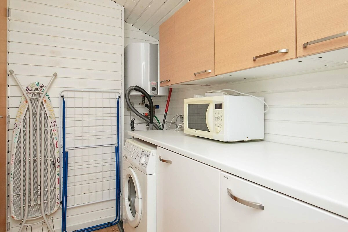 , open keuken(fornuis(elektrisch), afzuigkap, koffiezetapparaat, afwasmachine, koelkast), woon/slaapkamer(TV, radio, CD-speler, stereo-installatie, chromecast), slaapkamer(2-pers. bed), slaapkamer(2x stapelbed), slaapkamer(2x stapelbed), badkamer(bad of douche, wasbak, toilet), bijkeuken(magnetron, wasmachine), terras, terras(overdekt), BBQ, aardwarmte, lucht-lucht warmtepomp