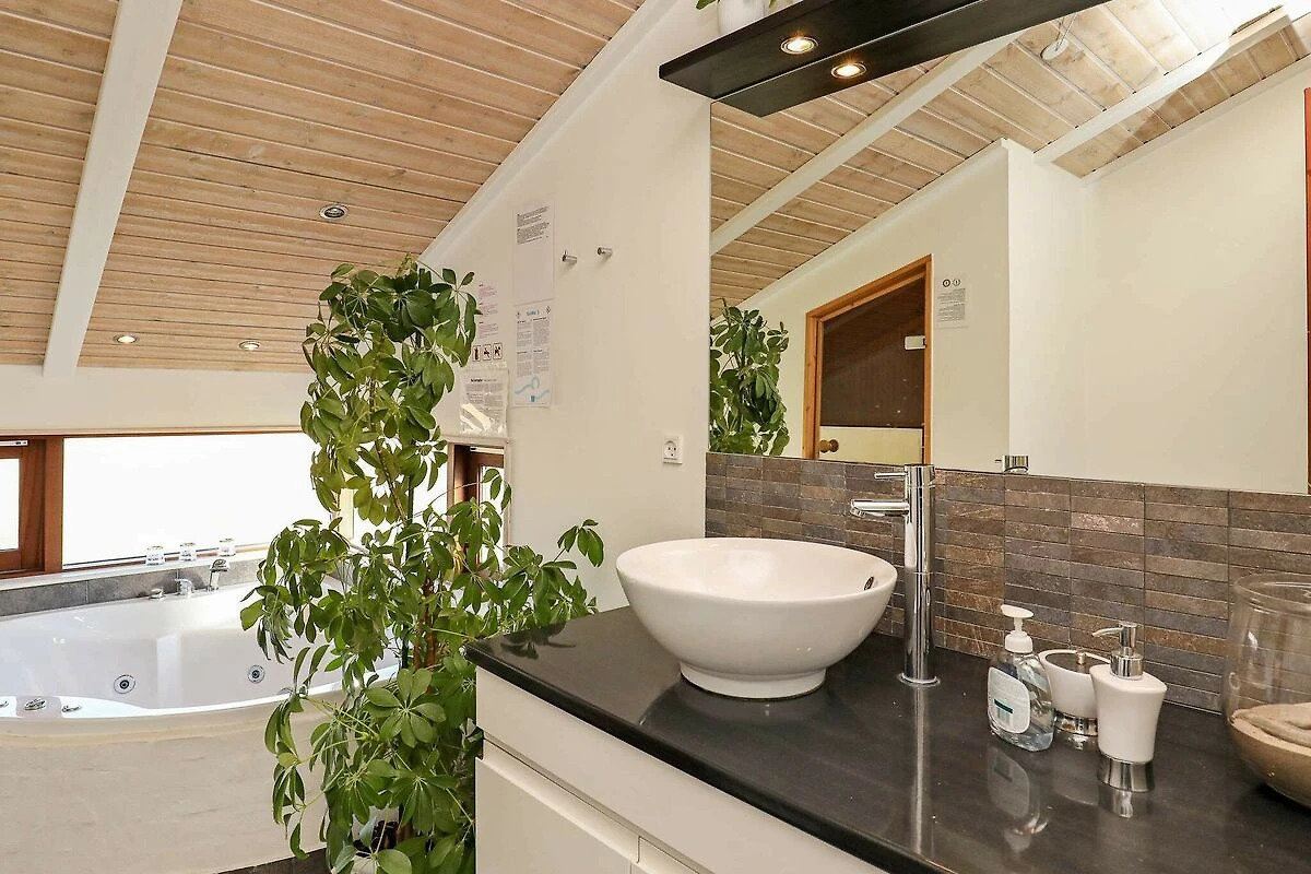 Ruim vakantiehuis met moderne gemakken, De sauna en de jacuzzi waren perfect na een dag aan het nabijgelegen Norlev Strand,