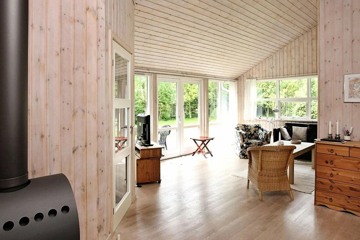 , woonkamer(2x 1-pers. bed), open keuken(fornuis(elektrisch), afzuigkap, koffiezetapparaat, magnetron, afwasmachine, vriezer(1-59L), koel-/vriescombinatie), woon/slaapkamer(TV(kabel, duitse zender(s), Deense TV zenders (DR1 en TV2)), DVD-speler, radio, CD-speler, stereo-installatie, kinderstoel), slaapkamer(2-pers. bed, ledikant), slaapkamer(2-pers. bed), slaapkamer(2-pers. bed), badkamer(vloerverwarming)(bad of douche, wasbak, toilet), badkamer(vloerverwarming)(bad of douche, wasbak, toilet), bubbelbad(in huis, verwarmd, 2 personen), sauna(in huis, verwarmd, 4 personen), verwarming(elektrisch), terras, BBQ