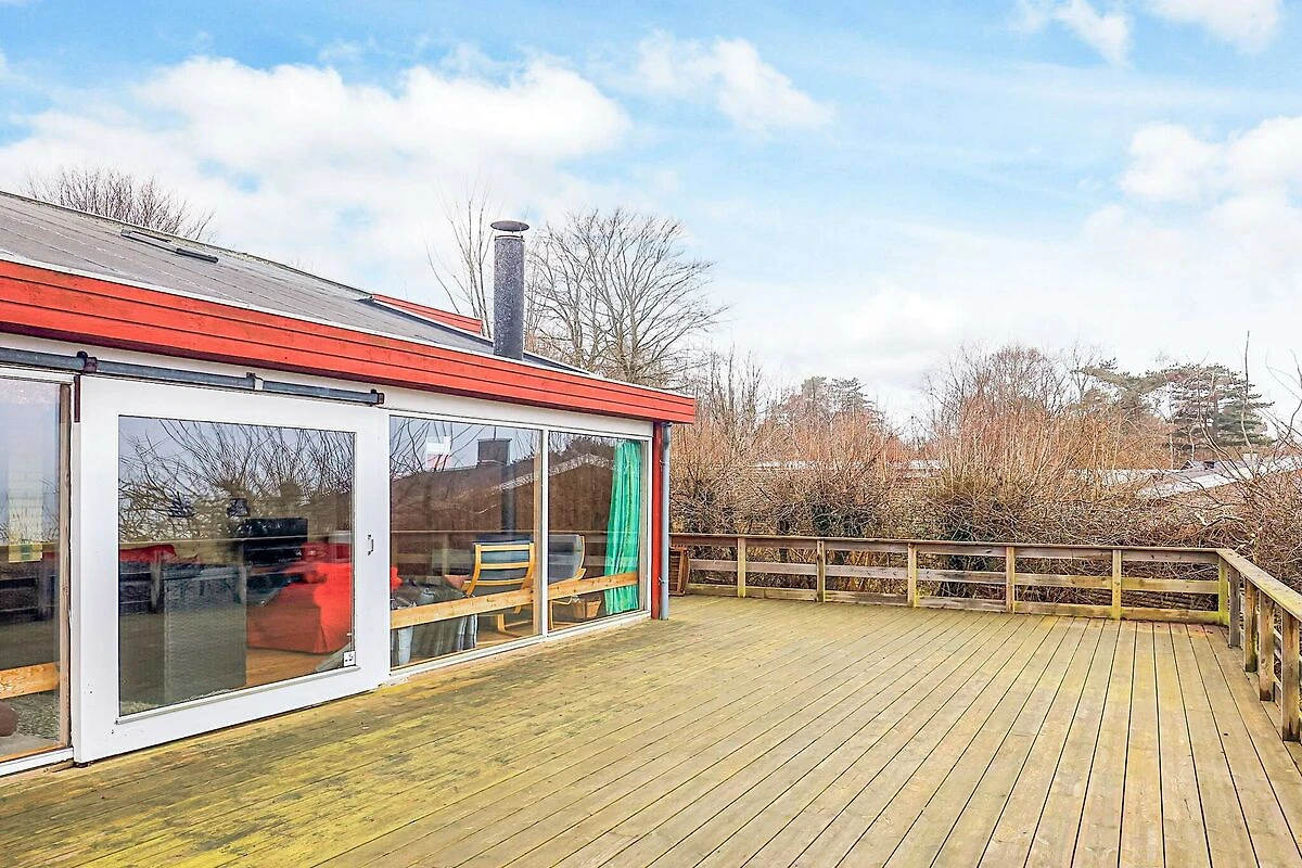 , open keuken(fornuis(elektrisch), koffiezetapparaat, magnetron, afwasmachine, koel-/vriescombinatie, wasdroger, wasmachine), woon/slaapkamer(TV(satelliet, duitse zender(s), Deense TV zenders (DR1 en TV2))), slaapkamer(2-pers. bed), slaapkamer(2-pers. bed), slaapkamer(2x stapelbed), slaapkamer(2x stapelbed), badkamer(bad of douche, wasbak, toilet), carport, sauna(in huis, verwarmd, 4 personen), verwarming(elektrisch), terras, terras(overdekt), BBQ, lucht-lucht warmtepomp