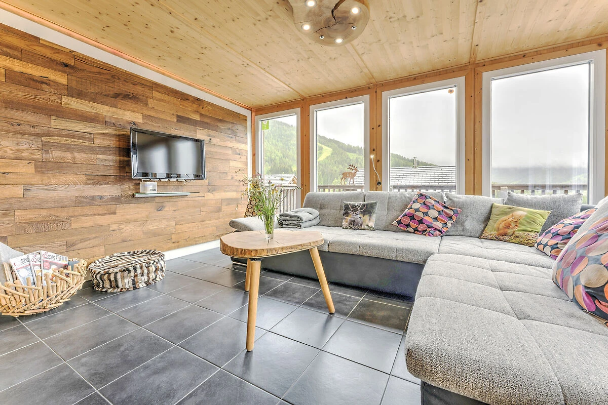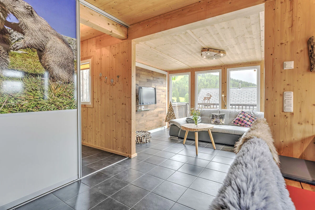 Het houten chalet beschikt over een gezellige woonkamer, een open keuken, 3 slaapkamers, een ruime badkamer, wasmachine en een infraroodsauna. Het chalet ligt op het zuiden en heeft dus de hele dag zon. Vanuit de woonkamer en de diverse terrassen is er prachtig uitzicht op het omliggende berglandschap, de skilift en het dorp.