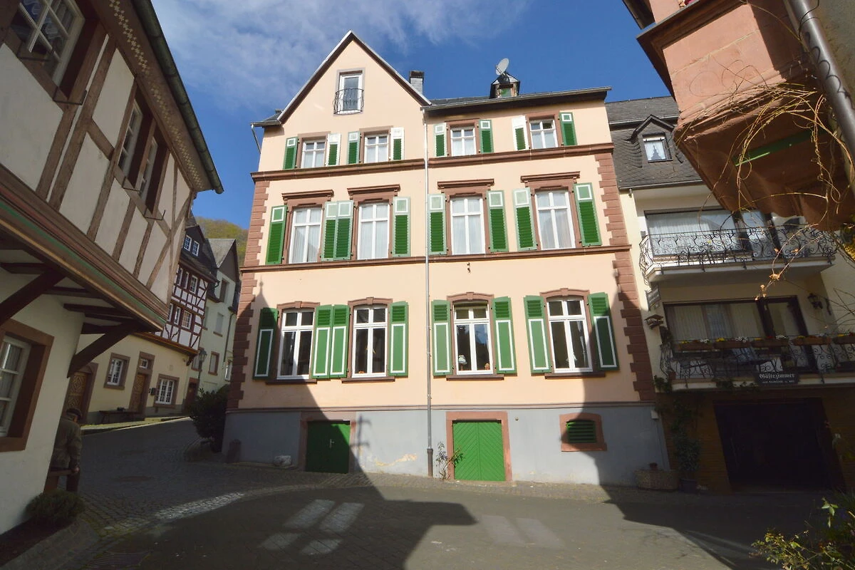 prima huis, goed gelegen, ideaal voor grote groepen. Oud hotel met gezellige bar..... In de kelder is er ruimte om fietsen te plaatsen en heeft een deur die uitgeeft op straat... Er is niet veel aanwezig voor kinderen ( pubers ) zoal bv een pingpong, biljart, tafelvoetbal.... Bakker en apotheker in de straat, beenhouwer en bank om de hoek. Voor grote aankopen moet men het dorp uit... +/- 10km. Toeristische info in Bernkastel. Na het laatste weekend van oktober sluit er veel, ook de rondvaarten op de moezel stoppen dan. Voorziening in huis waren OK, enkel de keuken kan beter. Deze is niet voorzien op 18 personen. Er is vrijwel geen bergruimte: geen schappen, zeer kleine koelkast; te weinig bestek ; te weinig gewone glazen.... we hebben de eigenares hierop aangesproken en ze zou dit aanpassen.... verder is dit huis zeker aan te raden.... We verbleven er met 18 personen , van 30/10 tot 4/11/2009
