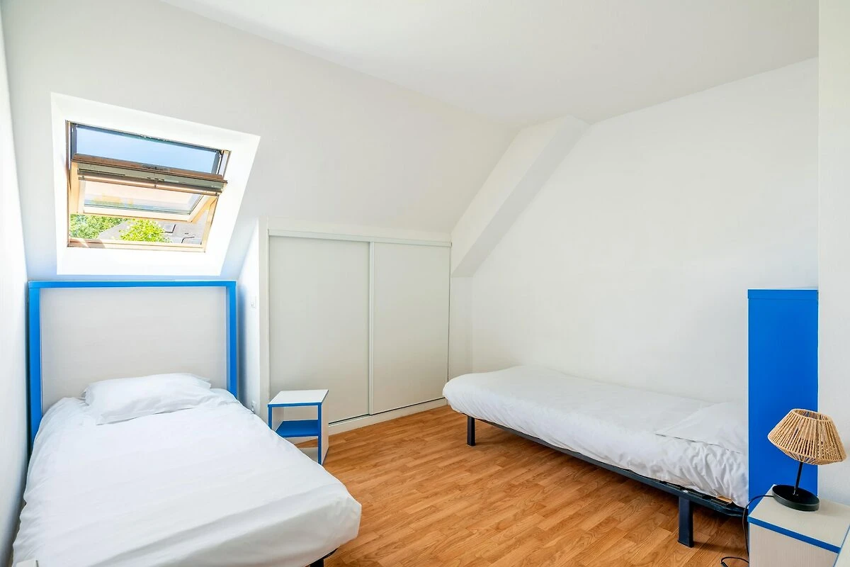 Dit comfortabele vakantiehuis met 3 kamers van 50 m² biedt plaats aan maximaal 6 gasten en is ideaal voor gezinnen of groepen. Het beschikt over een slaapkamer met een tweepersoonsbed (160x190), een tweede slaapkamer met twee eenpersoonsbedden (80x190) en een lichte woonkamer met een tweepersoonsslaapbank en tv. De badkamer is uitgerust met een bad en een ingebouwd toilet.