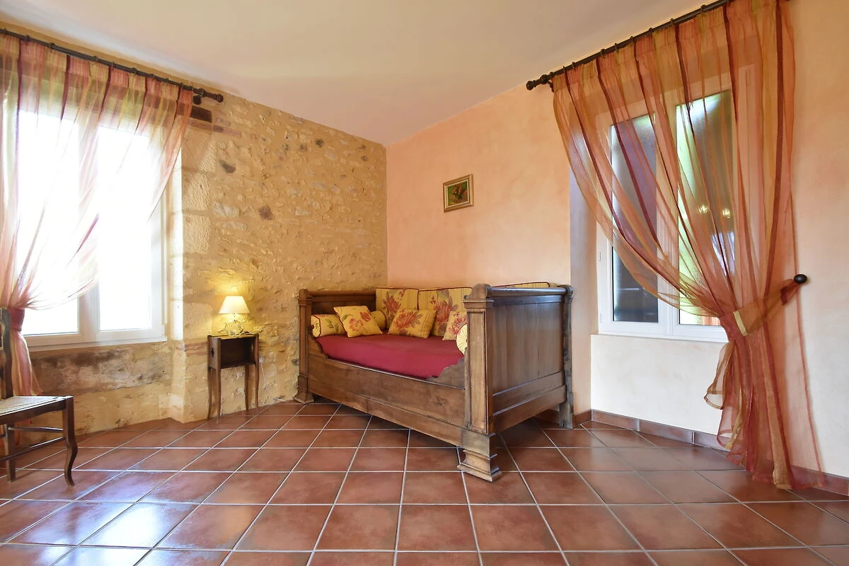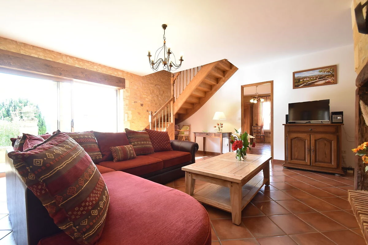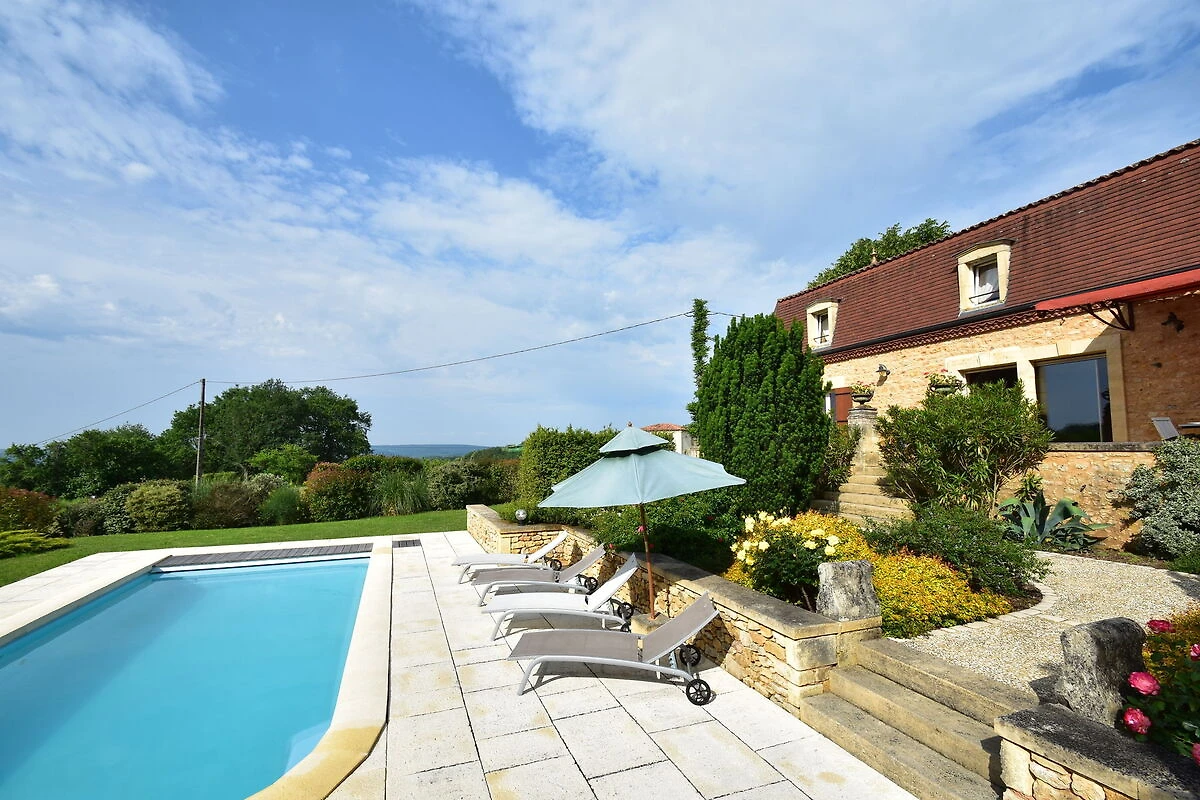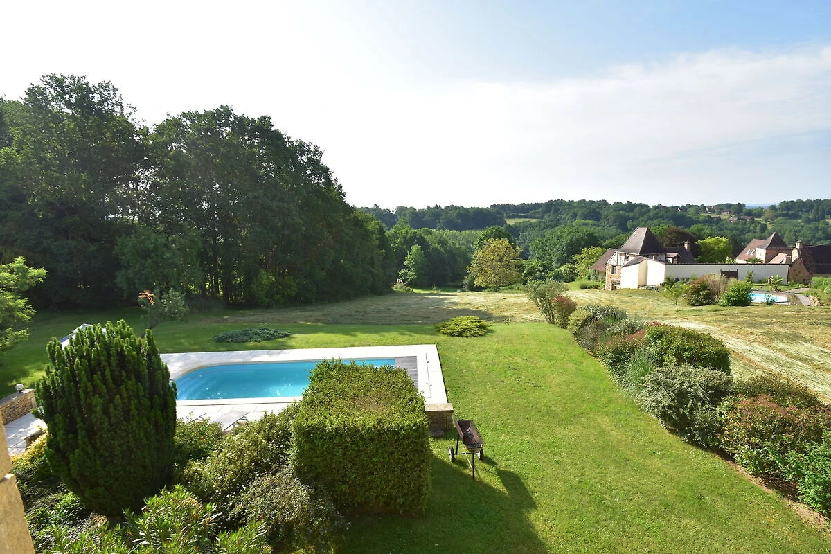 Dit vakantiehuis met privézwembad bij Coux-et-Bigaroque (5 km) ligt lekker rustig in het groen, met een prachtig uitzicht . Met 4 slaapkamers is het ideaal voor een familie. Een actieve dag kanoën op de Dordogne (Siorac, 8 km) is een mogelijkheid, maar lekker slenteren door het middeleeuwse Belvès (14 km) is ook een goed idee. Voor de kinderen is het leuk om de beroemde grotten in de omgeving van Les Eyzies-de-Tayac-Sireuil (14 km) te bezoeken. De prachtige omgeving kun je ook met de fiets verkennen, in Coux is een fietsverhuur te vinden. Je kunt fijn gaan winkelen in Bergerac (45 km), prachtige kastelen bezoeken, zoals in Milandes (24 km) of bezoek stadjes als Domme (34 km) en la Roque-Gageac (29 km). Hier word je 's morgens in alle rust wakker en geniet je op het overdekte terras op het zuiden van een ontbijtje met lekker warme croissantjes en een kop koffie. Daarna daal je de Romaanse trap af en neem je een verfrissende duik in het zwembad (natuurlijk gezuiverd zonder chloor).