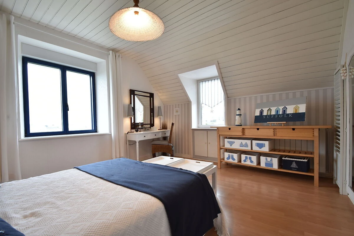 Op de 1e etage: (slaapkamer(2-pers. bed(140 x 190 cm)), slaapkamer(2-pers. bed(160 x 200 cm)), slaapkamer(2x 1-pers. bed(70 x 190 cm)), badkamer(douche, wastafel), toilet)