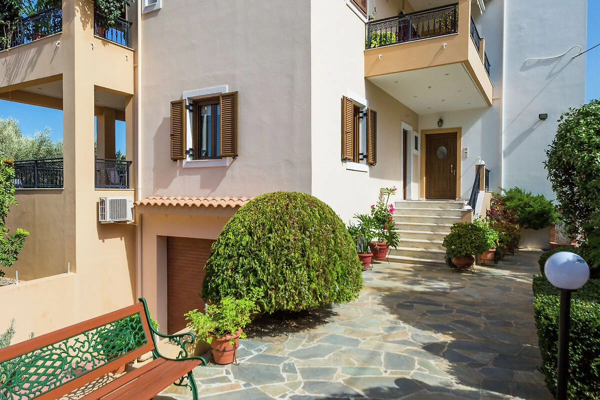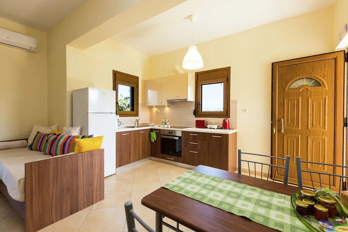 Dit nieuwe appartementen complex ligt aan begin van rustig dorpje Prines, slechts 5 km van Rethymno stad. De prachtige omheinde tuin van 4000 m2 met bbq, parking, veel olijfbomen, kleurrijke en geurige bloemen en weelderig gazon, zorgt ervoor dat men zich comfortabel en veilig voelt. De 3 goed uitgeruste appartementen hebben een slaapkamer en een comfortabele woon-eetkamer, geschikt voor 4 pers. Het "Oil Apartment" interieur is modern ingericht met als thema "olie", een van de traditionele producten en geschikt voor 4 pers. De woonkamer heeft twee sofabedden, de keuken is volledig uitgerust en de slaapkamer is ruim. Op de veranda, omgeven door olijfbomen. kunnen de gasten genieten van hun ontbijt met uitzicht op de tuin. Prines dorp is een rustig dorp, ideaal voor mensen die van de natuur houden. Olijfbomen overal in de omgeving. Het dorp heeft 2 kleine mini-markten en tavernes. Meer winkels, supermarkten, restaurants, slagerij, bakker en internet cafe in het grotere naburige dorp Atsipopoulo (1 km). De zee is op 2 km, maar het dichtstbijzijnde georganiseerde strand ligt aan de boulevard in de bruisende stad Rethymno. In de buurt zijn de stranden bij Petres, Episkopi, Georgioupoli.