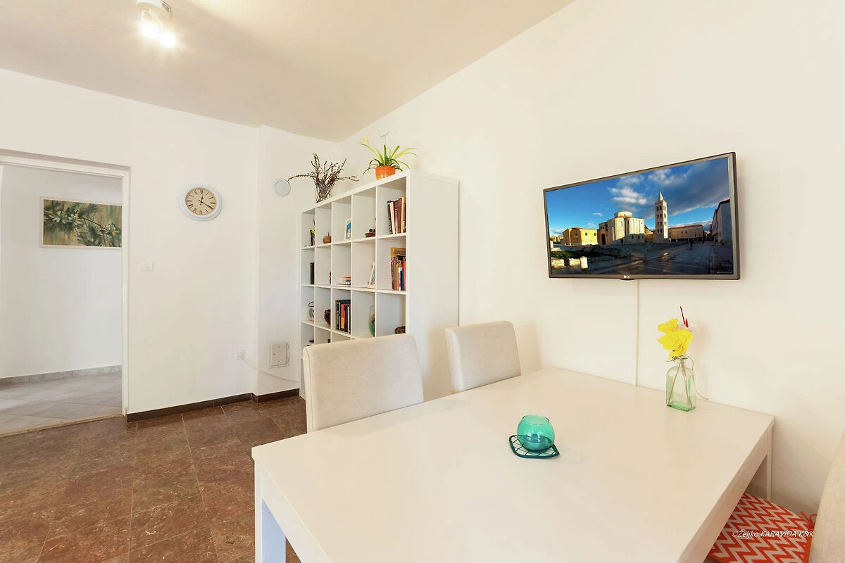 Dit appartement voor vier personen ligt op slechts 250 meter van het strand en biedt een ontspannende vakantie met gratis wifi en moderne voorzieningen. Gelegen op 2,5 km van het bruisende centrum van Zadar, kunnen gasten historische bezienswaardigheden, een bruisend nachtleven en een schilderachtig uitzicht op de kust verkennen. Met restaurants, dagelijkse benodigdheden en openbaar vervoer binnen 200 meter is gemak gegarandeerd.