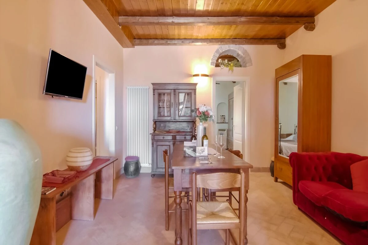 Dit charmante appartement, verscholen in de rustige wijk Contrada San Savino, combineert rustieke charme met modern comfort. De rustige tuin, het schaduwrijke terras en het verfrissende zwembad dat u deelt met andere gasten, creëren de perfecte plek om te ontspannen en tot rust te komen. Kinderen kunnen genieten van de speeltoestellen terwijl volwassenen loungen op ligstoelen of de barbecue aansteken voor een diner in de buitenlucht. De gezellige indeling, airconditioning en weelderige buitenruimtes van de accommodatie beloven een serene en gezinsvriendelijke sfeer.