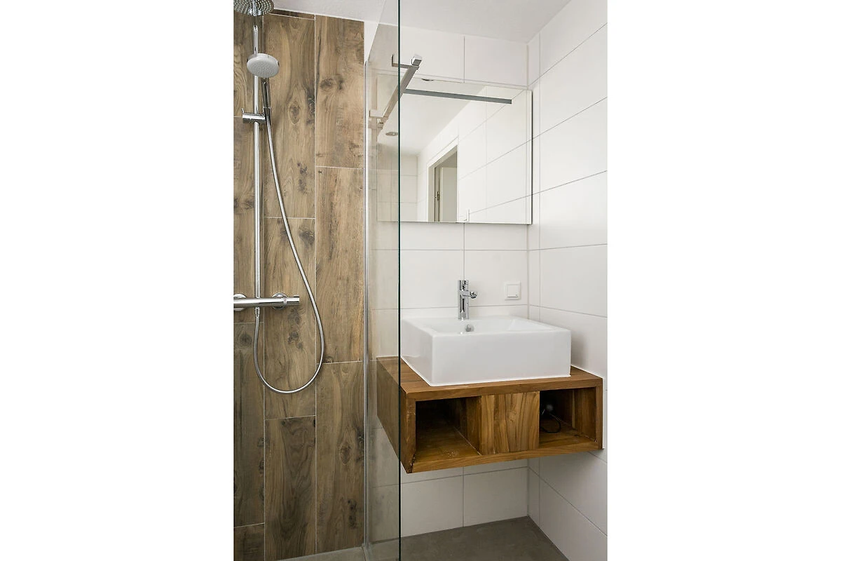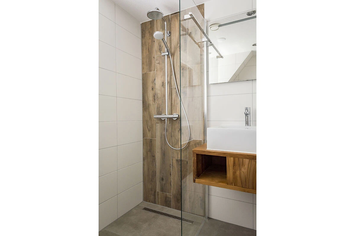 Op de 1e etage: (slaapkamer(2x 1-pers. bed(boxspring)), slaapkamer(2x 1-pers. bed(boxspring)), badkamer(douche, wastafel, toilet))
