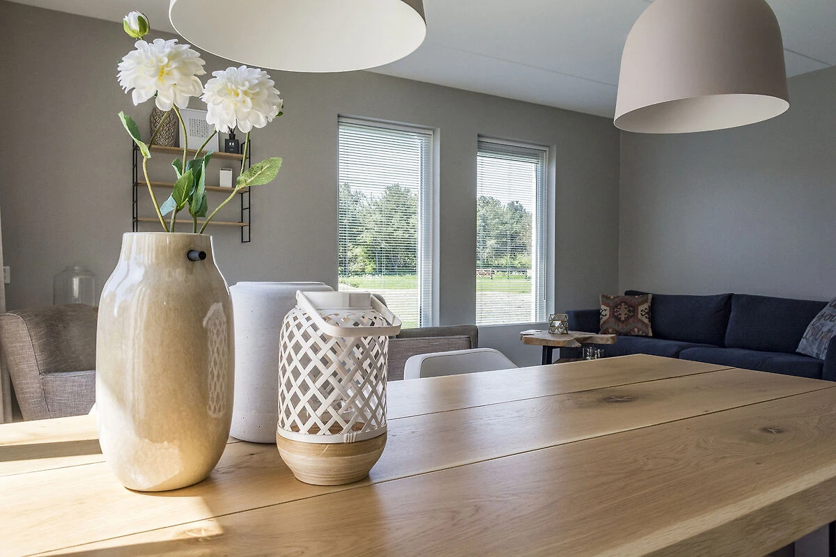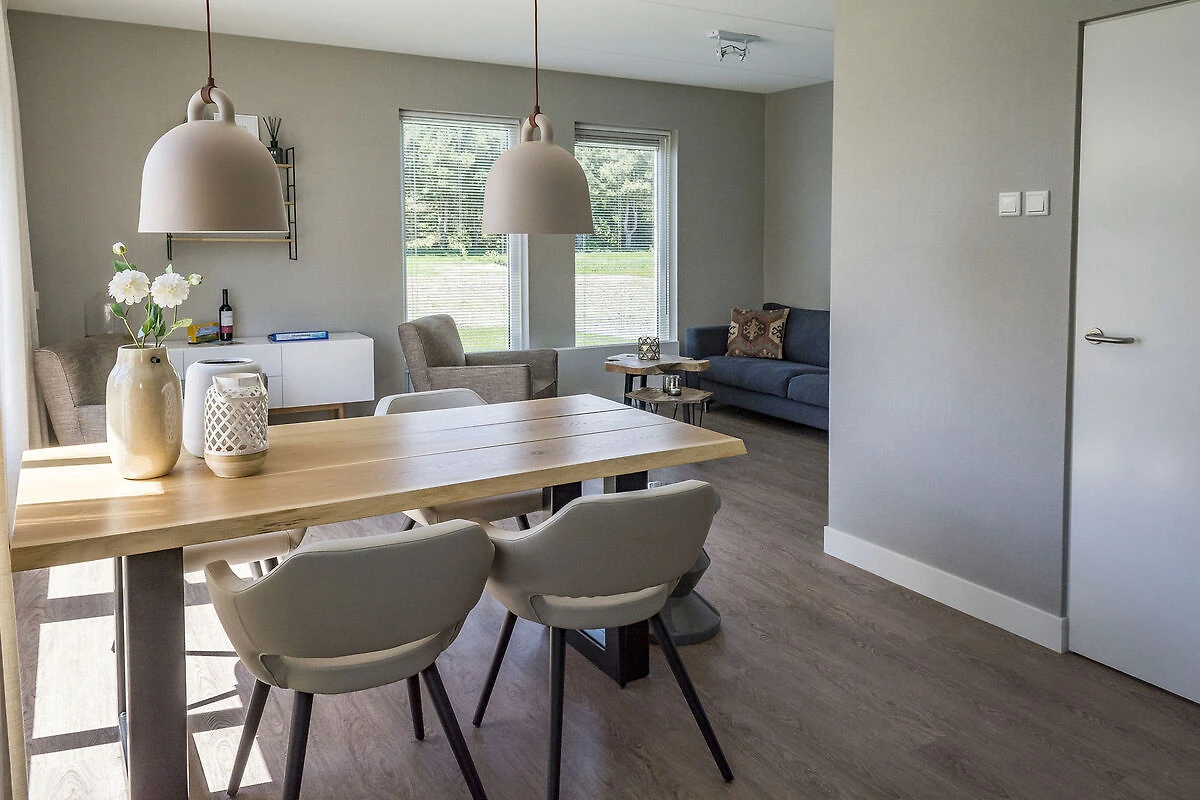 Het is een prachtige bungalow met uitzicht op de natuur, stijlvol ingericht en met alle voorzieningen, zoals smart-tv, mixer en opgemaakte bedden,