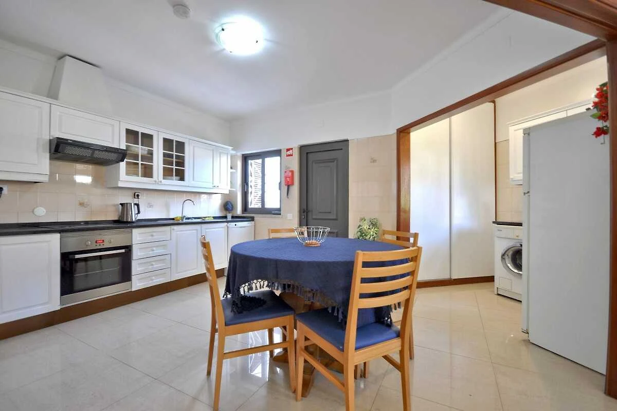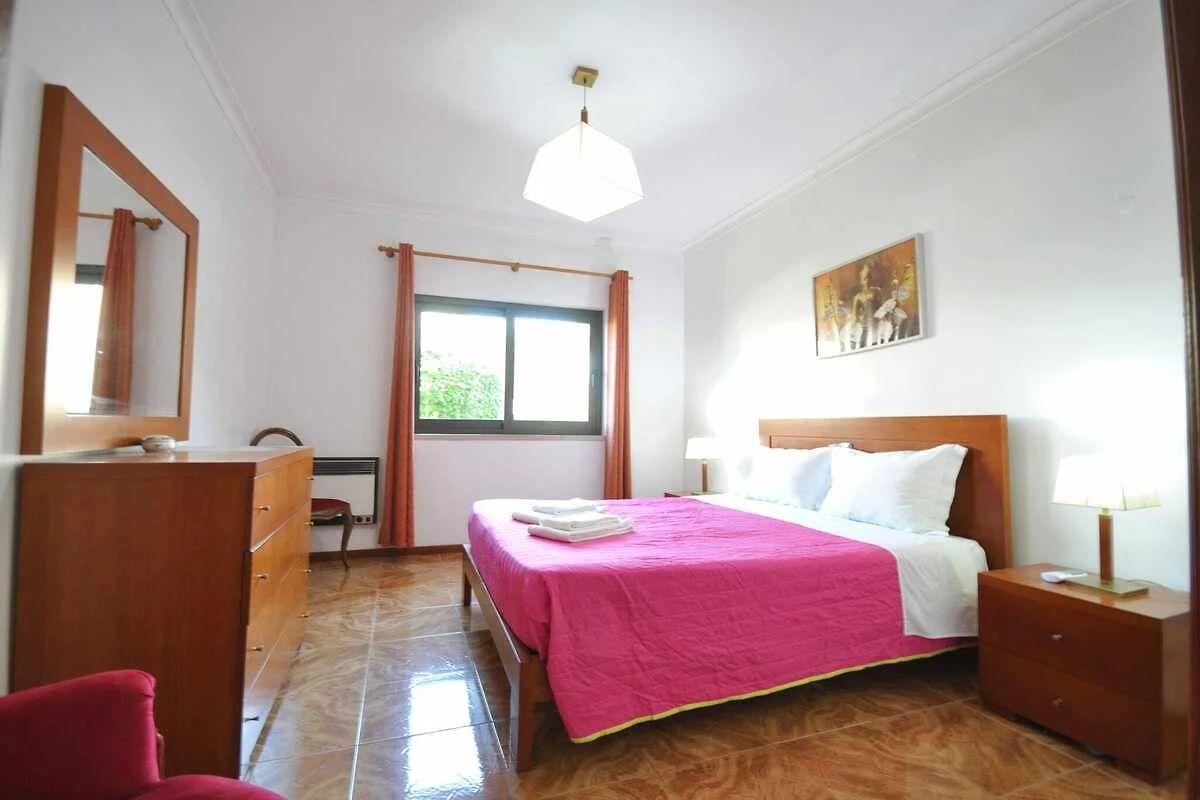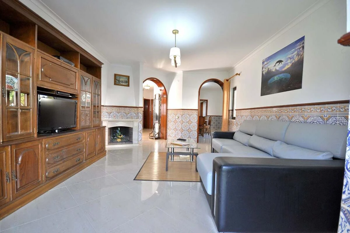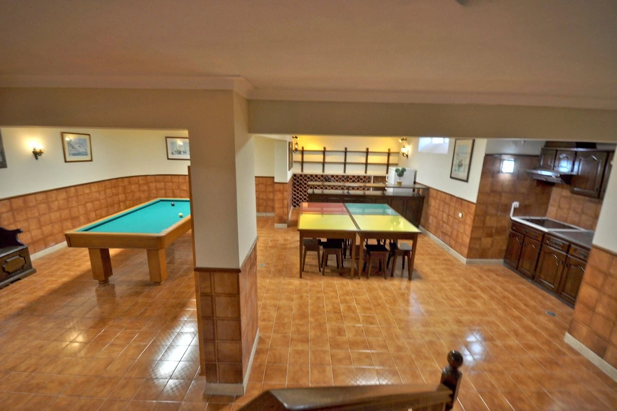 Als u de statige hal van deze villa binnenkomt, ziet en voelt u het al: u bent in Portugal! Verspreid door de gehele villa, maar vooral opvallend aanwezig in de hal en de woonkamer zijn de typische Portugese "azelejos", de prachtige handgeschilderde tegeltjes. In de woonkamer is een ruime zithoek en een open haard. In de aangrenzende eetkamer staat een grote eettafel, en hieraan grenzend ligt de halfopen keuken. Deze is goed ingericht met o.a. een wasmachine en hier staat ook nog een tafel om rustig aan te kunnen ontbijten. Op de begane grond ligt een slaapkamer met eigen badkamer.