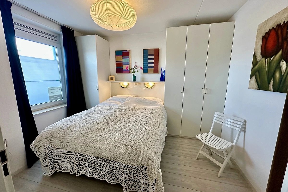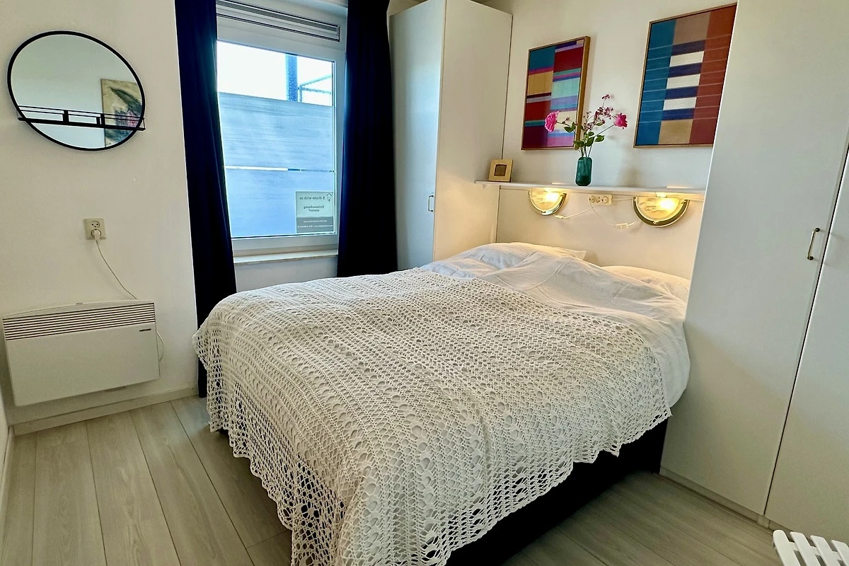 1 slaapkamer met comfortabele boxspringbedden en voldoende kastruimte. De bedden zijn bij aankomst opgemaakt.