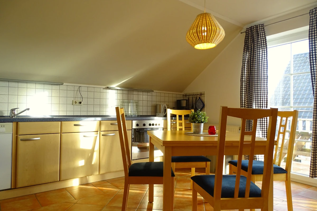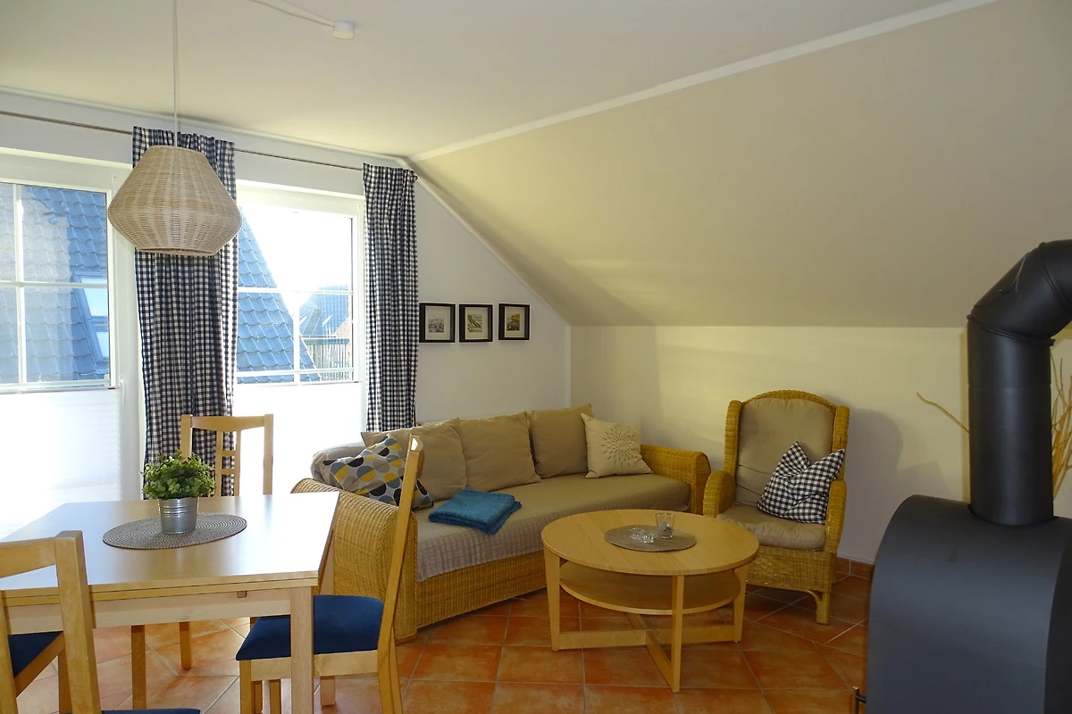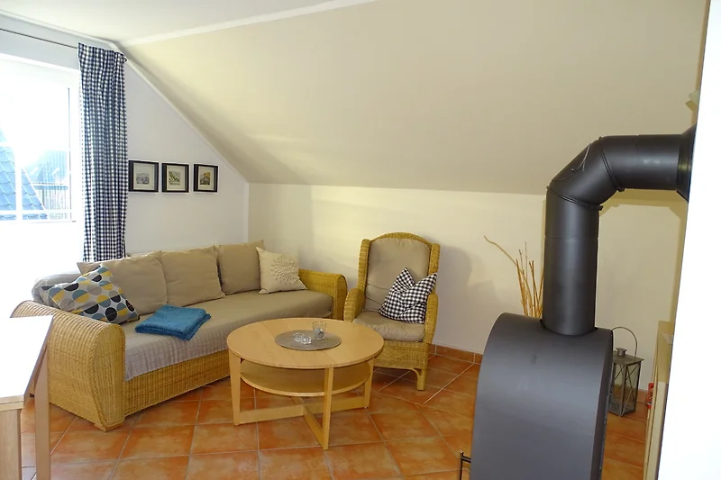 De mooie vakantiewoning "Insel Hiddensee" is een van de drie vakantiewoningen in "Haus Küstenfeuer", bevindt zich op de bovenste verdieping en is bereikbaar via een buitentrap. De ruime vakantiewoning biedt plaats aan maximaal 4 personen. In de uitnodigende woonkamer bevindt zich een volledig uitgeruste keuken en een gezellige zithoek. Zelfs bij minder mooi weer kunt u ontspannen bij de open haard en wat quality time doorbrengen met een boek of een familiespel.