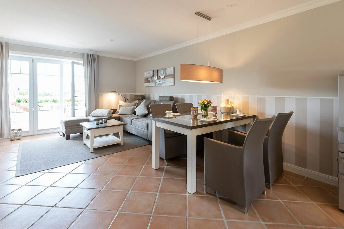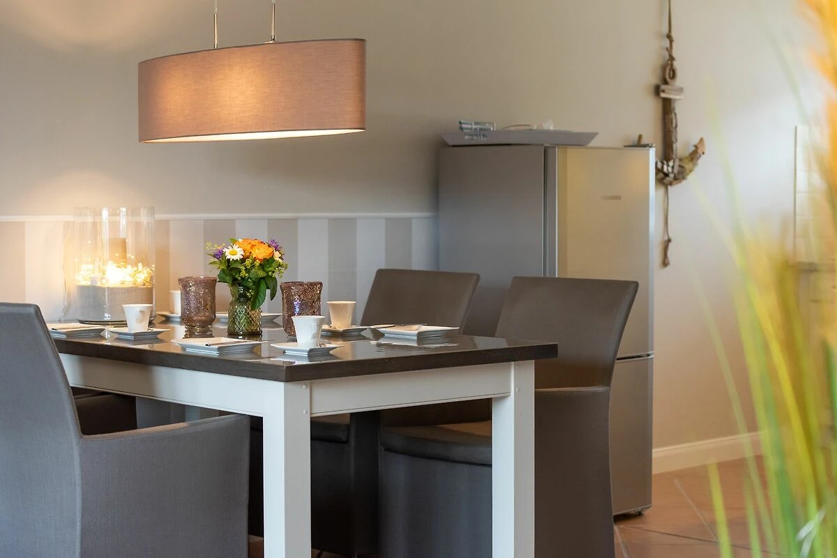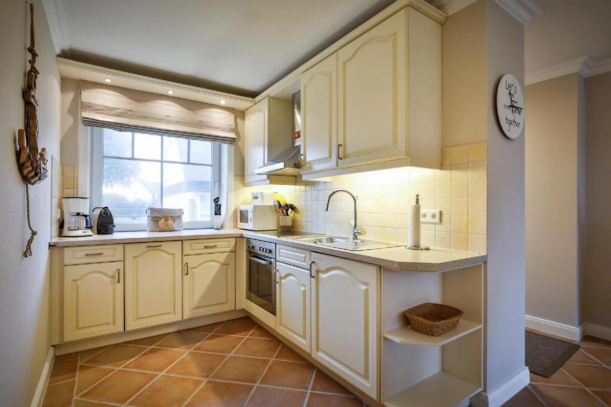 In dit appartement klopt alles. Meubels in landelijke stijl, smaakvol en kleurig goed op elkaar afgestemd. Helaas hadden we een week met niet zo mooi weer, daarom waren we meer in het appartement dan gedacht. De zitmeubels zijn top, het bed was erg goed om in te slapen. Op het terras mooie zitmeubels en een strandstoel, de zonneluifel hebben we niet nodig gehad. De inrichting van het appartement is zeer goed. Het is het eerste appartement zonder klachten. We hebben al veel meegemaakt, van doorgelegen bedden en doorgezakte meubels, een appartement zonder comfort, zelf vlooien, een toilet in de souterrain met een pomp. We gaan al sinds de jaren '80 naar Sylt, dan maak je wat mee. Service van het bureau totaal tevredenstellend.