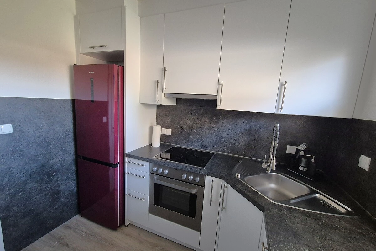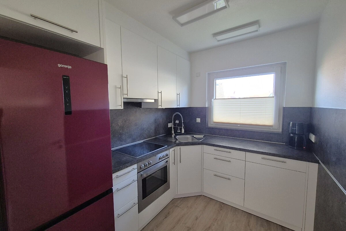 De nieuwe inbouwkeuken beschikt over een koel-vriescombinatie, een oven, een keramische kookplaat, een vaatwasser, een koffiezetapparaat, een waterkoker, een broodrooster en een keukenmachine met mixer.