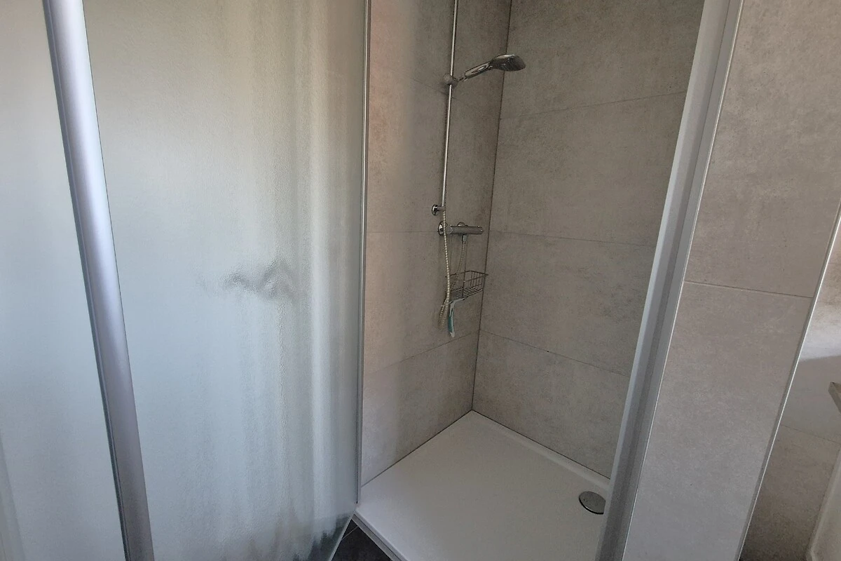 In de nieuw gerenoveerde douchebadkamer met wc, handdoekradiator en raam kunt u de dag ontspannen beginnen.