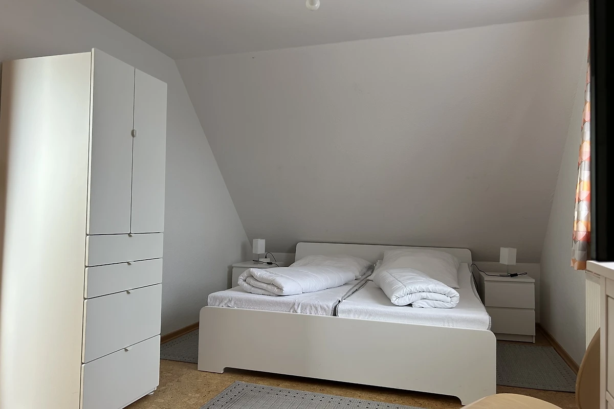 1 slaapkamer met tweepersoonsbed, kledingkast en sat-tv