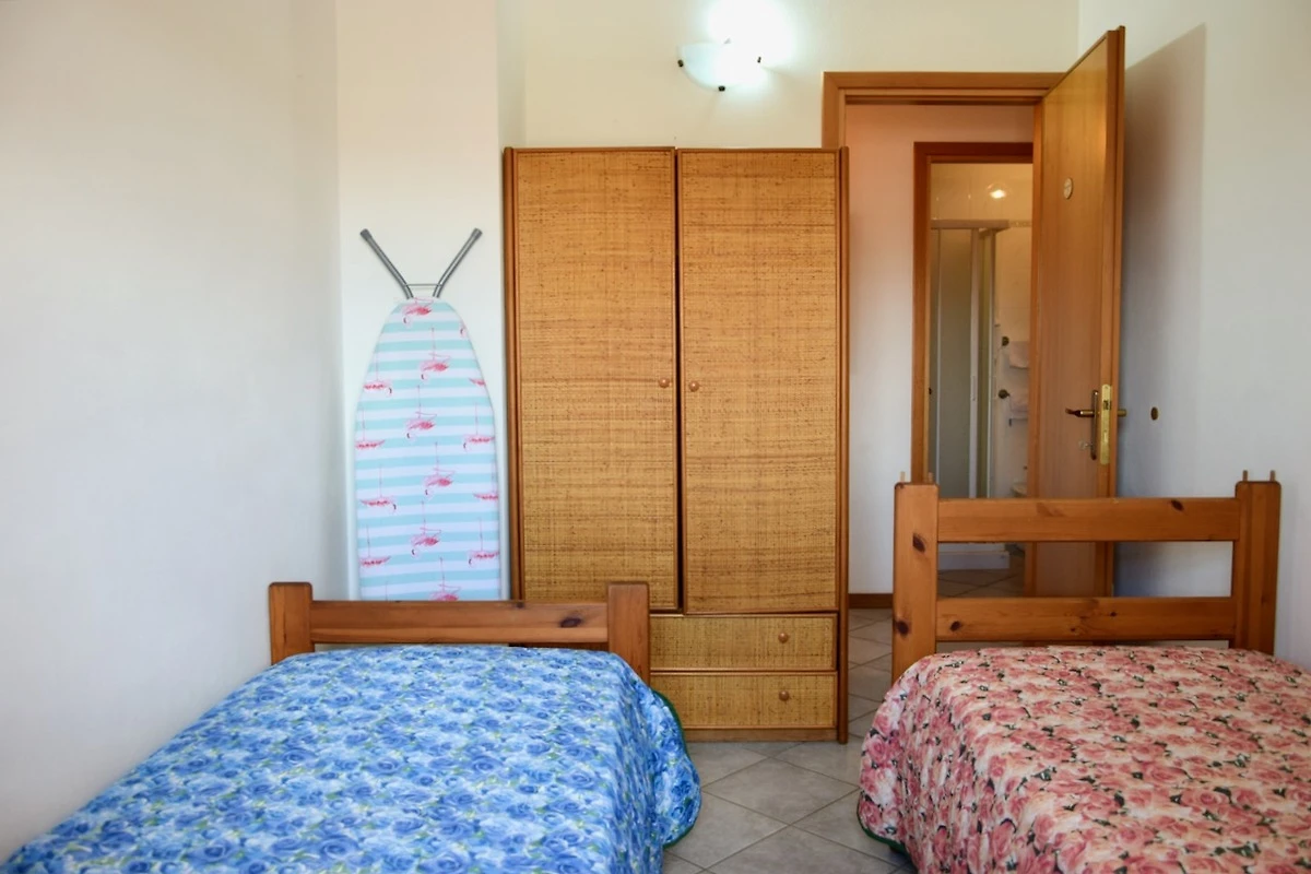 Gezellig driekamerappartement gelegen op de 4e verdieping met lift van een condominium op centrale locatie, met groot eetbaar terras met zeezicht. Biedt woon-/eetkamer met uitgeruste keuken, slaapkamer met twee eenpersoonsbedden, tweepersoonsslaapkamer met poef als derde bed, badkamer met douche zonder raam. Voorzien van airconditioning, wasmachine, gasfornuis, koelkast met vriezer, magnetron, koffiemachine voor pads, strijkplank en strijkijzer, tv, wifi. Parkeerplaats in privé garage in de kelder van het condominium. De tarieven zijn per week met aankomst en vertrek op zaterdag.