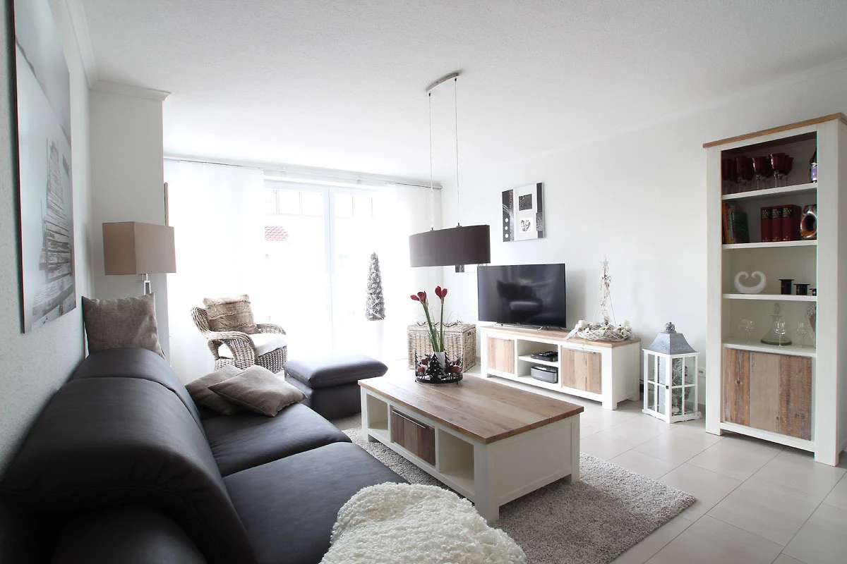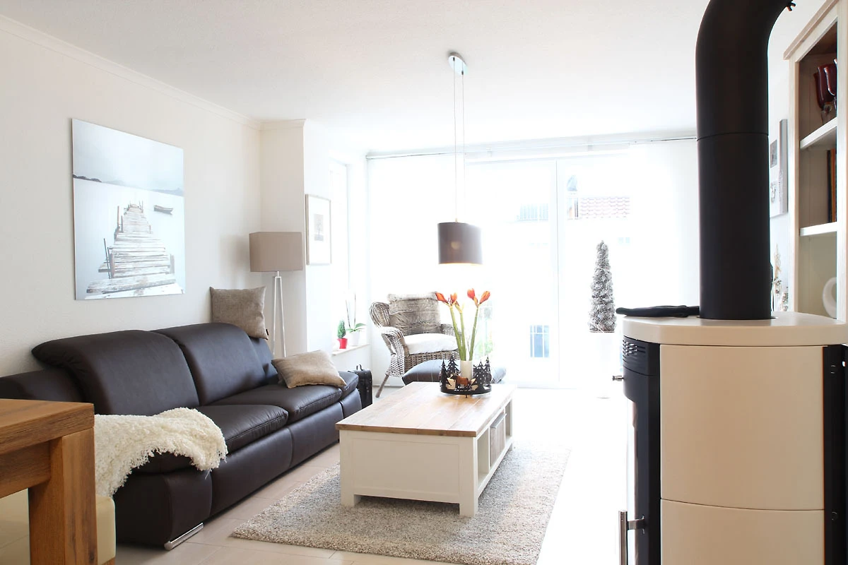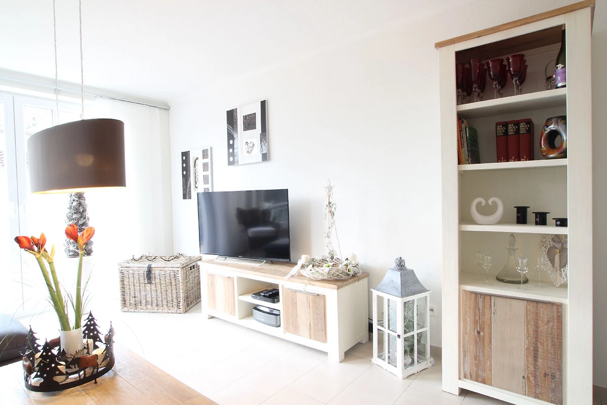 In de woonkamer ontbraken jaloezieën of ondoorzichtige gordijnen, zodat je 's avonds zonder blikken van het buurblok in de woonkamer kon zitten. Wat ons ook enigszins heeft geschrokken, is de hoge prijs voor het verstrekken van handdoeken en beddengoed en de eindschoonmaak. Daarvoor had men toch iets meer netheid kunnen verwachten, want alleen de toiletborstel was een ramp en in de koelkast waren er verschillende vlekken van uitgelopen goederen. Helaas hadden we ook problemen met de bedden. Enerzijds kraakten ze behoorlijk en een bed was zo wankel dat we er iets onder moesten leggen, maar daarbij viel de hoofdkussenspan af, omdat de schroef gewoon was ingestoken. Dit kan niet bij de huurprijs. Bovendien is sinds juni 2022 toeristenbelasting verschuldigd. De ligging ten opzichte van het strand is erg goed, hoewel we duidelijk mooiere stranden hebben gezien. Hier liggen veel te veel stenen op het strand, waardoor blootvoets lopen niet erg aangenaam is. Aan de overkant vindt men een bakker en een souvenirwinkel met een aanbod van broodjes. De restaurants zijn wat karig, deels gesloten, sommige met schrikbarend hoge prijzen. Wat men kan aanraden is het dijkterras met verschillend. Fressbuden direct voor het strand - vooral de viskraam is zeer aan te bevelen, evenals het gezellige en zeer vriendelijke Deichhus met Griekse gerechten. Verder is men hier eerder afhankelijk van de fiets en de auto en zijn de bezienswaardigheden beperkt.