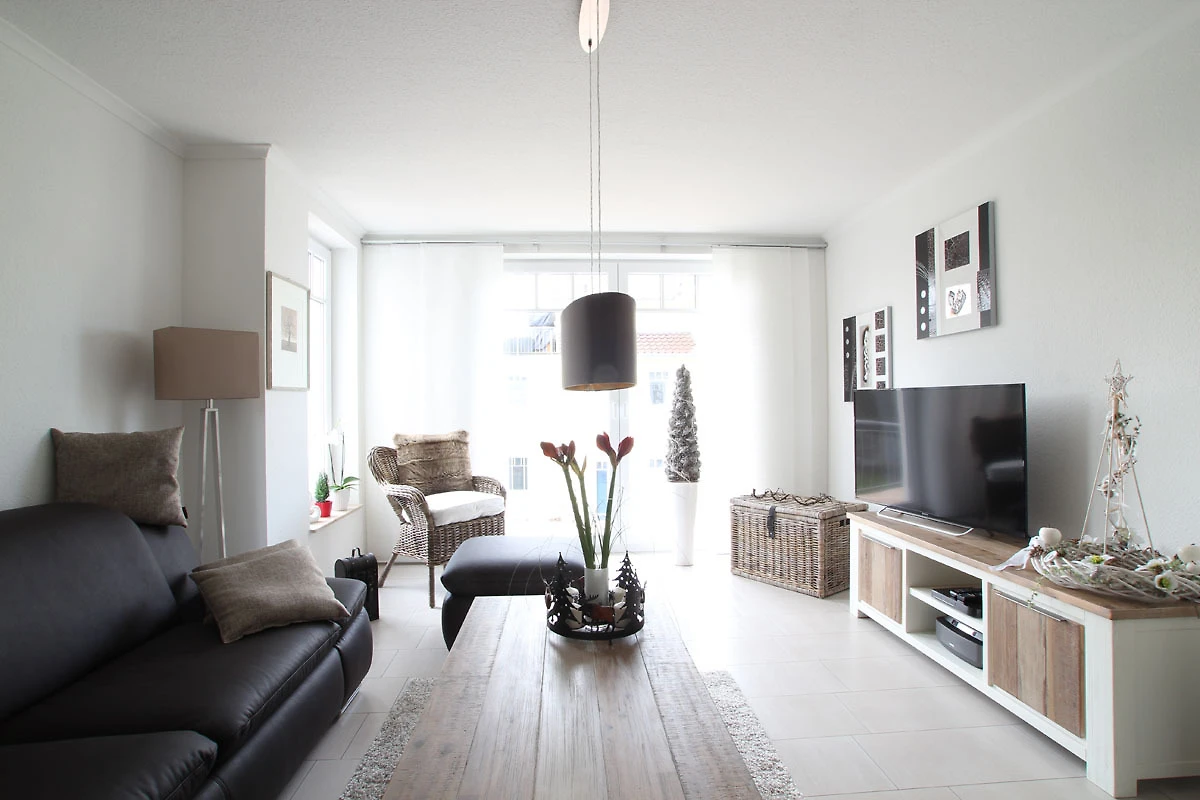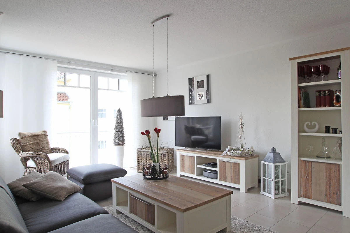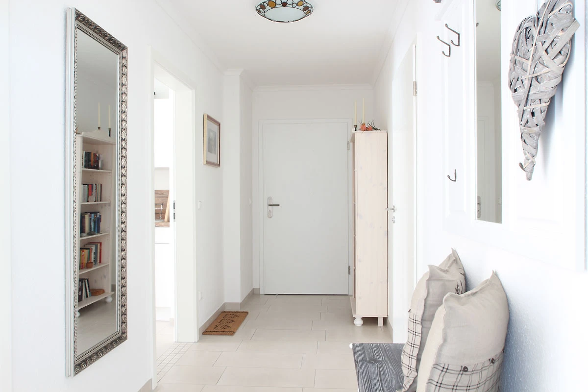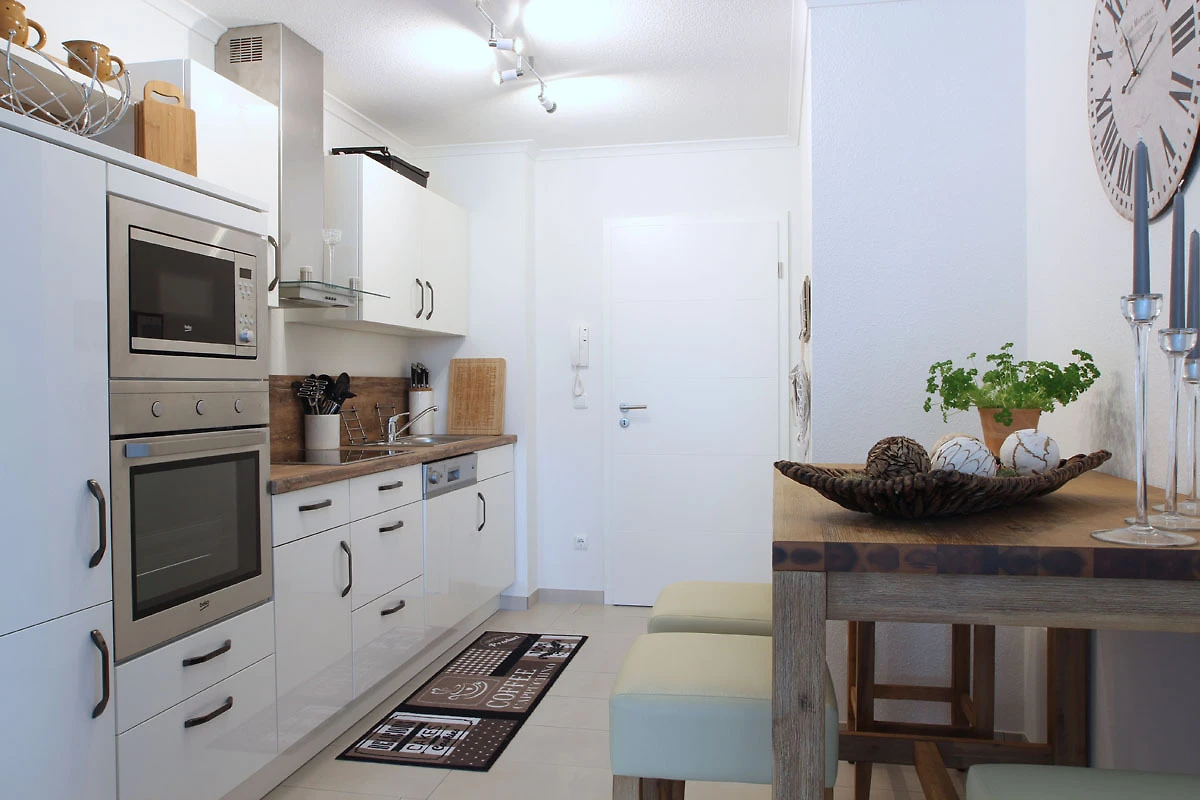 In de woonkamer ontbraken jaloezieën of ondoorzichtige gordijnen, zodat je 's avonds zonder blikken van het buurblok in de woonkamer kon zitten. Wat ons ook enigszins heeft geschrokken, is de hoge prijs voor het verstrekken van handdoeken en beddengoed en de eindschoonmaak. Daarvoor had men toch iets meer netheid kunnen verwachten, want alleen de toiletborstel was een ramp en in de koelkast waren er verschillende vlekken van uitgelopen goederen. Helaas hadden we ook problemen met de bedden. Enerzijds kraakten ze behoorlijk en een bed was zo wankel dat we er iets onder moesten leggen, maar daarbij viel de hoofdkussenspan af, omdat de schroef gewoon was ingestoken. Dit kan niet bij de huurprijs. Bovendien is sinds juni 2022 toeristenbelasting verschuldigd. De ligging ten opzichte van het strand is erg goed, hoewel we duidelijk mooiere stranden hebben gezien. Hier liggen veel te veel stenen op het strand, waardoor blootvoets lopen niet erg aangenaam is. Aan de overkant vindt men een bakker en een souvenirwinkel met een aanbod van broodjes. De restaurants zijn wat karig, deels gesloten, sommige met schrikbarend hoge prijzen. Wat men kan aanraden is het dijkterras met verschillend. Fressbuden direct voor het strand - vooral de viskraam is zeer aan te bevelen, evenals het gezellige en zeer vriendelijke Deichhus met Griekse gerechten. Verder is men hier eerder afhankelijk van de fiets en de auto en zijn de bezienswaardigheden beperkt.