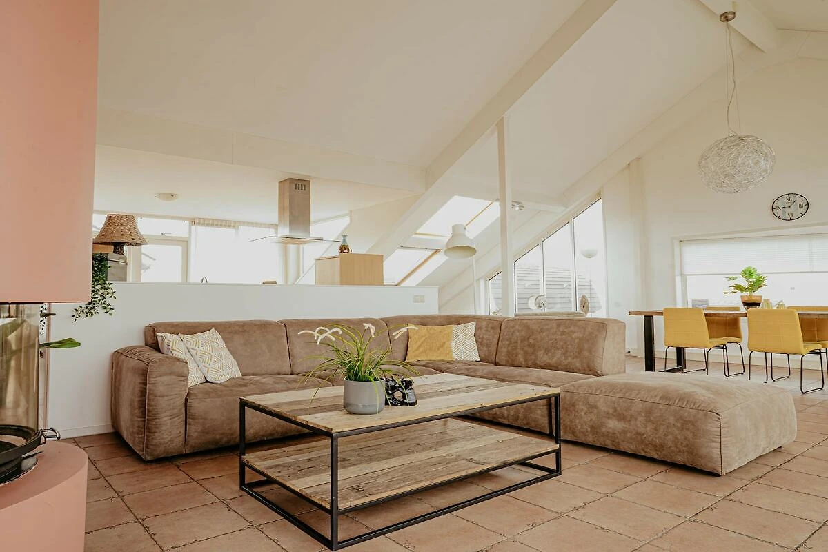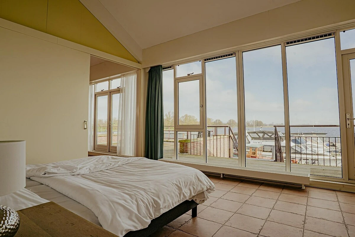 Ervaar een uniek verblijf boven het Uitgeestermeer in dit stijlvolle penthouse aan het water. De grote ramen zijn ontworpen om indruk te maken en overspoelen de ruimte met natuurlijk licht en bieden een panoramisch uitzicht op de jachthaven en het meer. Binnen vindt u in de open woon- en eetkamer luxe zitgelegenheid, een gezellige open haard en een volledig uitgeruste keuken – perfect voor rustige ochtenden of gezellige avonden. Stap uit op uw eigen dakterras en geniet van de prachtige omgeving met een glas wijn in de hand.