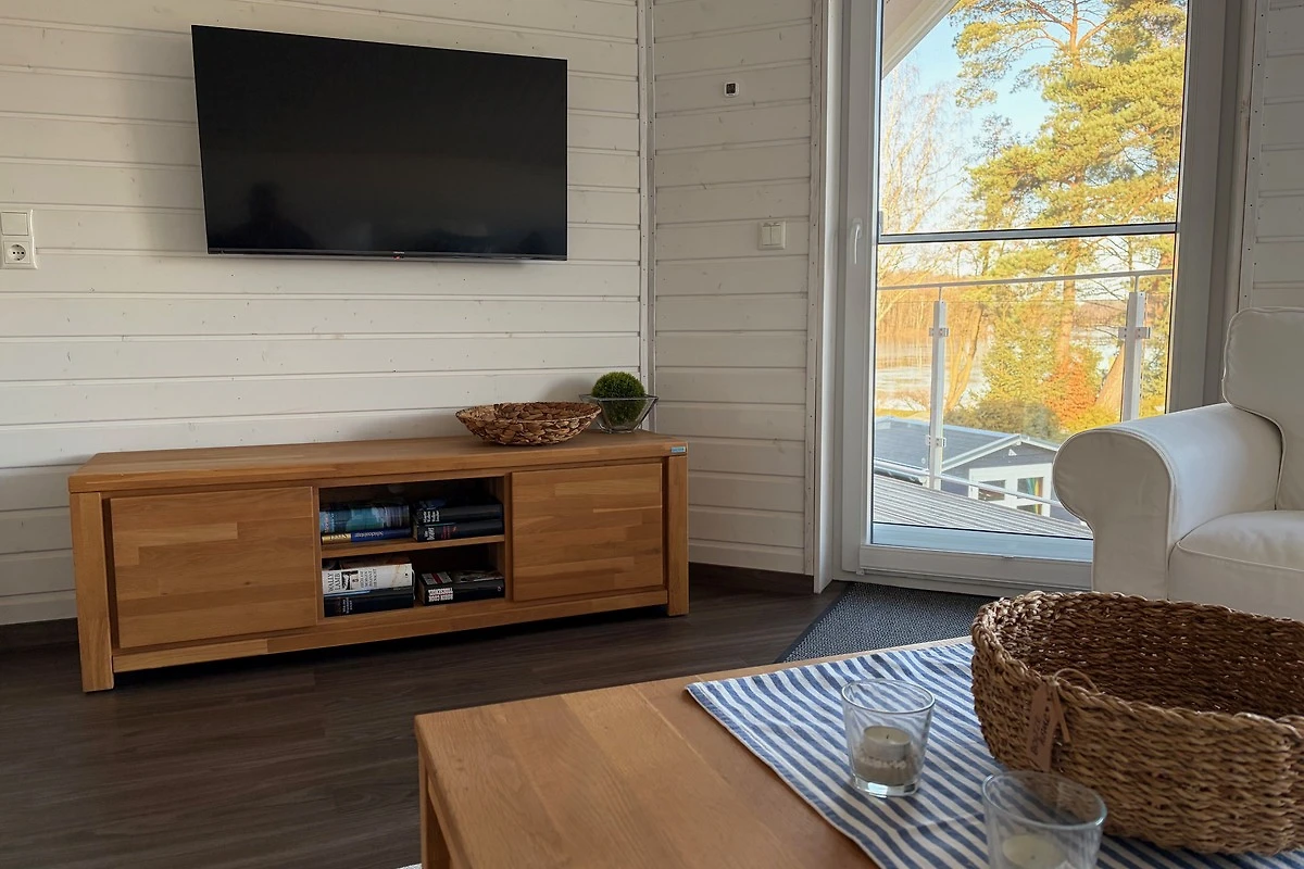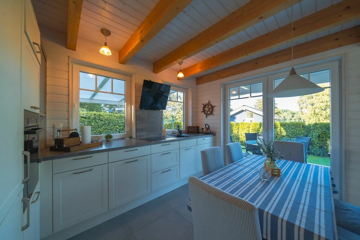 Modern en hoogwaardig vakantiehuis ingericht in Scandinavisch/Maritiem design met roeiboot, sauna, bad en open haard met direct uitzicht op het meer van Dümmer. Het kleine vakantiehuisgebied is idyllisch gelegen in een natuurgebied in de West-Mecklenburgse heuvels en meren, ongeveer 18 km van de deelstaathoofdstad Schwerin. Het zeven kilometer lange meer is een geweldige plek voor vissers en dankzij de goede waterkwaliteit en het zandstrand ook een heerlijk zwemmeer - zelfs voor de allerkleinste gasten.