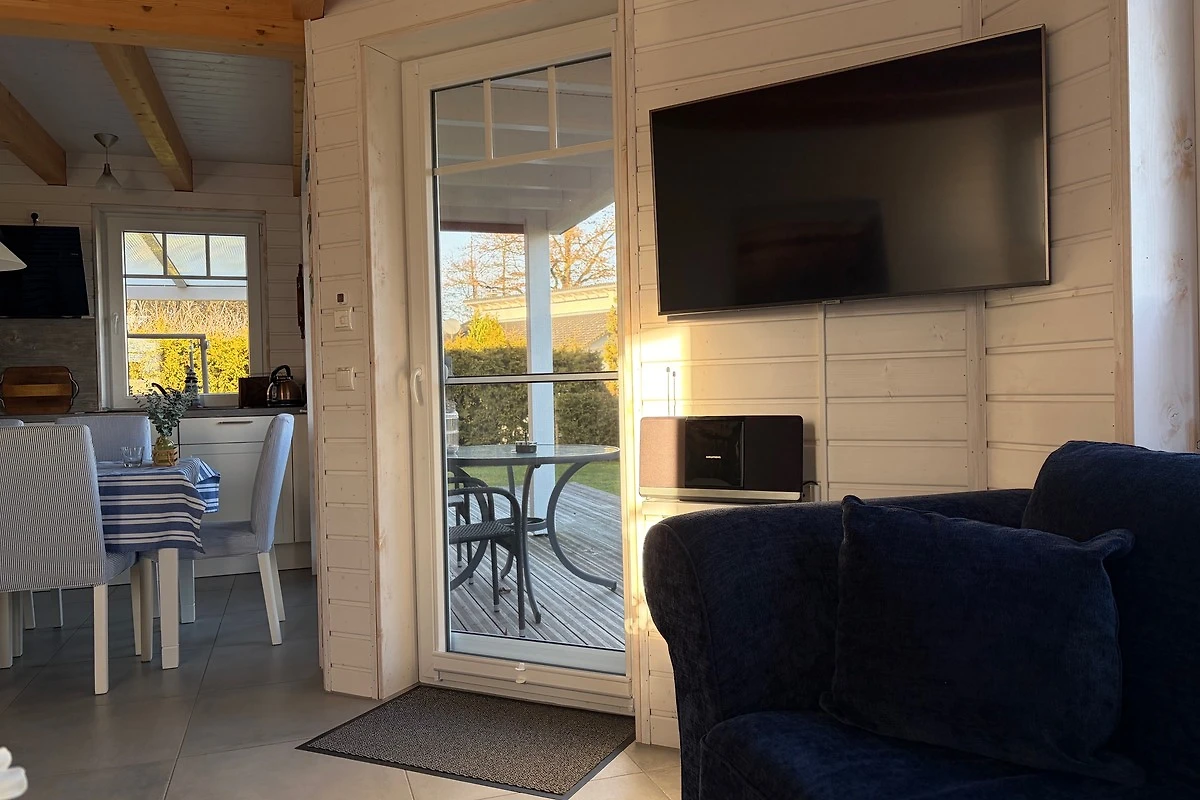 - Chillruimte met bank, ligstoel en TV met toegang tot het balkon