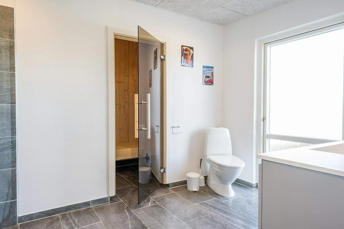 Aantrekkelijk, in 2021 nieuw gebouwd vakantiehuis met een hottub voor het baden in de open lucht. Het vakantiehuis ligt bij Skaven Strand en biedt plaats aan 6 + 2 personen. Er zijn drie mooie slaapkamers met elk een tweepersoonsbed en een eenpersoonsbed in twee van de slaapkamers, die boven het tweepersoonsbed is geplaatst. Open keuken-/woonruimte voor het gezinsleven en met een houtkachel voor koelere dagen. Daarnaast is er een badkamer met een kleine sauna en een praktische gastenwc. Het vakantiehuis is licht en sfeervol ingericht. Vanuit de keuken heeft u toegang tot een mooi houten terras, waar u ook de hottub kunt vinden. Het terrein is omheind en daarom perfect voor vakantiegangers die een viervoeter meenemen. Hier kunnen kinderen en honden vrij rondrennen. Er is een schommel aanwezig. Een gezinsvriendelijk vakantiehuis bij Skaven Strand.