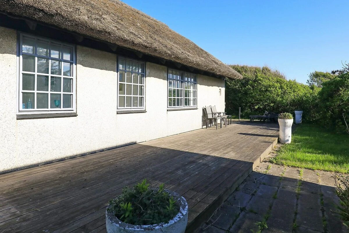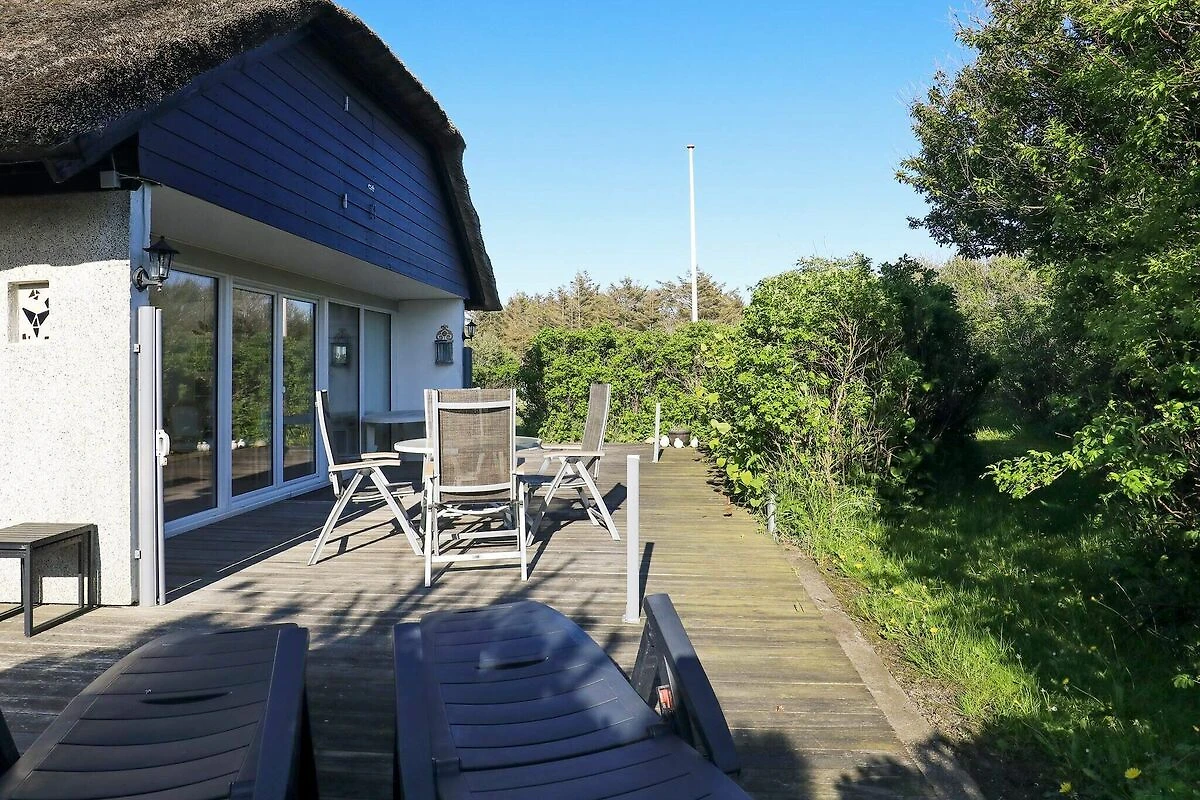 Het is een prachtig vakantiehuis met rieten dak, de inrichting is erg mooi en gezellig. De woonkamer is ruim en comfortabel. De bedden in de slaapkamers zijn goed; we hebben er heerlijk geslapen. De keuken is klein, maar heeft alles wat je nodig hebt. De badkamer is ook klein en functioneel. Er zat echter schimmel in de douche beneden, wat me stoorde. Dat zou makkelijk te verwijderen zijn. Het terras rondom het huis nodigt uit tot verpozen. Veel wilde rozen omringen het huis en beschermen het zo tegen de wind. De locatie is goed; een prachtig strand ligt op slechts een paar minuten lopen. Het is geen vakantiehuis zoals alle andere. Gewoon hygge :)
