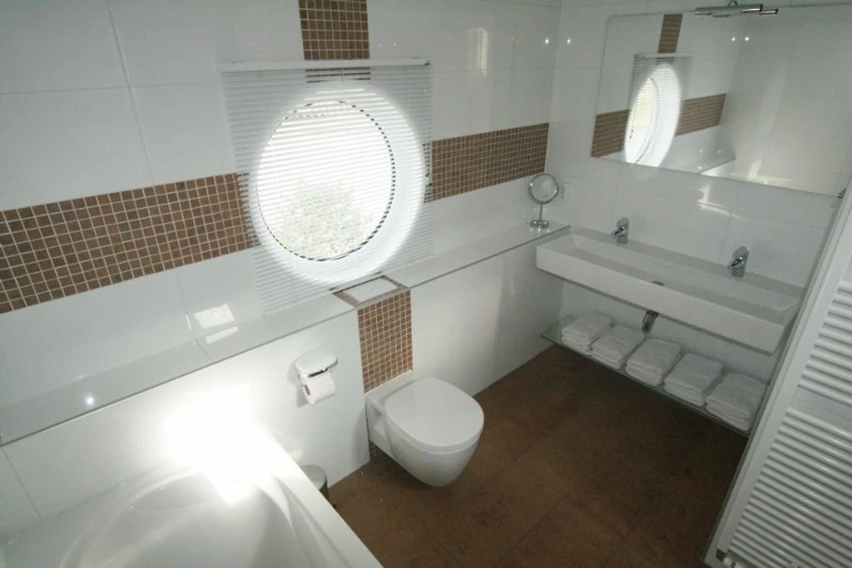 De open **woon- en keukenruimte** vormt het hart van het huis. De volledig uitgeruste keuken is perfect voor gezamenlijke kookavonden, terwijl het woongedeelte met zijn gezellige zitplaatsen uitnodigt tot gezellige uren of rustige avonden. Of het nu wellness, wateravontuur of gewoon ontspanning is – dit vakantiehuis combineert comfort, charme en een droomachtige ligging en maakt uw verblijf tot iets heel bijzonders.