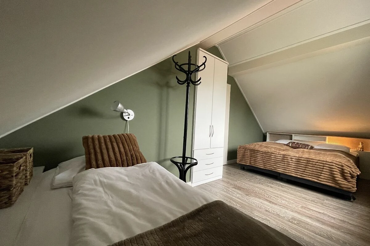 Binnen wachten **vier gezellige slaapkamers** op u, die met zorg zijn ingericht en een aangename sfeer creëren. Er zijn **twee moderne badkamers** en een extra **apart toilet** beschikbaar, zodat alle gasten zich comfortabel kunnen terugtrekken. Voor ontspannen wellnessmomenten zorgt bovendien de **eigen sauna**, die het hele jaar door pure ontspanning biedt.