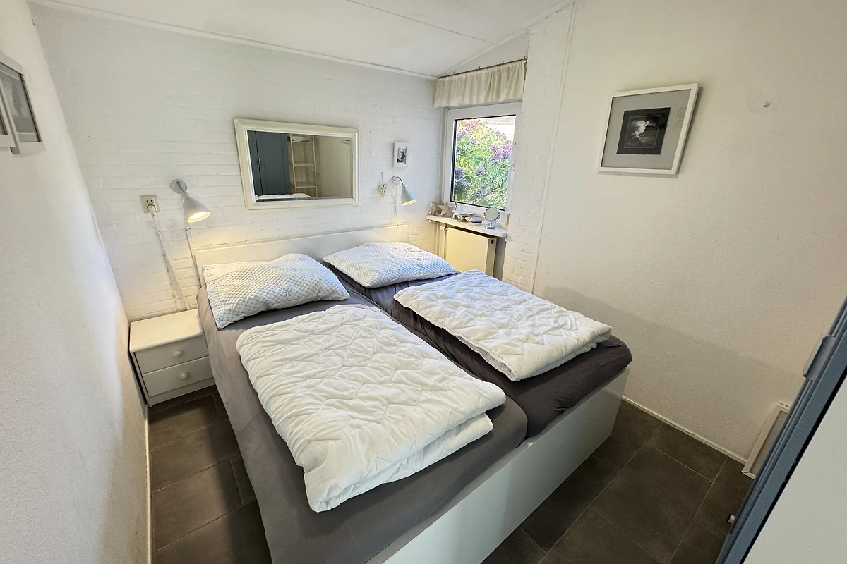 De bungalow is gelegen in een klein rustig vakantiepark vlakbij de jachthaven en het hondenstrand.