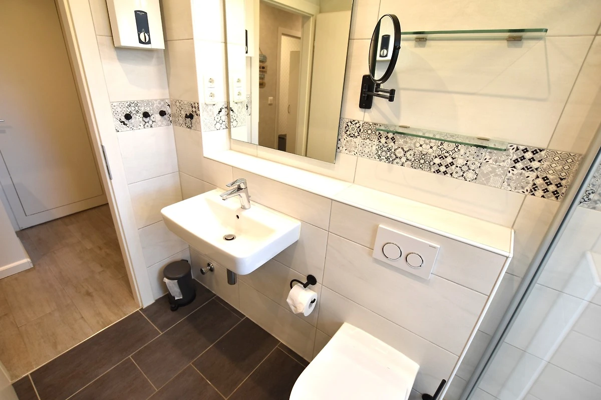 Een mooie, moderne en liefdevol ingerichte woning, die in principe alles bevat wat je in het dagelijks leven nodig hebt. De nieuwe badkamer is met de grote douche erg mooi en ik denk dat de woning ook met vier personen qua grootte nog in orde zou zijn. We hebben ons erg op ons gemak gevoeld en boeken graag weer. De ligging dicht bij het hondenstrand is geweldig. Dat is in het tussenseizoen weliswaar irrelevant, maar toch goed om te weten. Ik persoonlijk had gewild dat er tenminste zout en peper aanwezig waren en een boterklok :) - maar misschien is het overal aan de Duitse zee zo dat de basisgewichten er niet zijn. We kennen het anders van Denemarken. Verder ontbrak er echter niets. En dat de sauna en het zwembad gebruikt kunnen worden, is een cadeau.