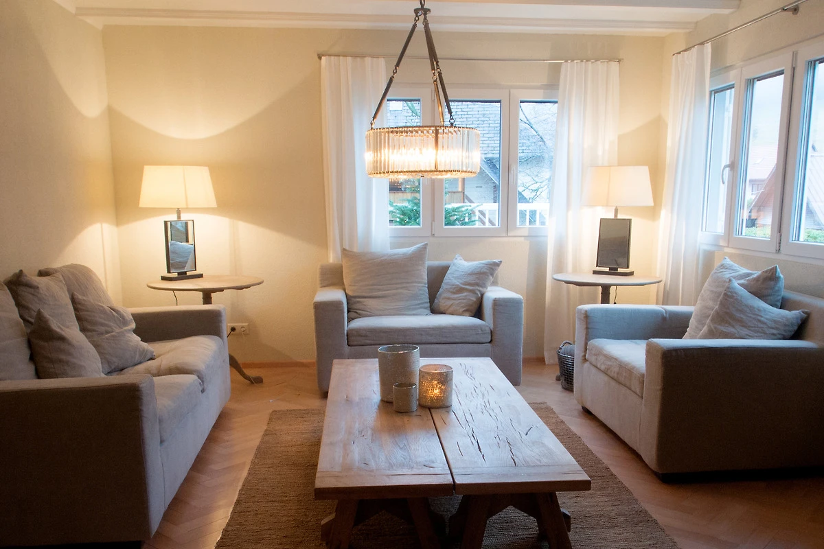 We waren voor 2 nachten in het Molerhüsli en zouden graag langer zijn gebleven. Het huis is totaal knus en zeer mooi ingericht, je voelt je er gewoon thuis en er is alles wat je nodig hebt voor gezellige dagen met het gezin (van de sauna, over spellen tot aan het raclettegerij). De bedden zijn zeer comfortabel en de locatie is mooi rustig als uitgangspunt voor wandelingen of uitstapjes naar dorpen in de omgeving. De incheck/-uitcheck was ook eenvoudig. Enkel de uitchecktijd om 10 uur zou iets later mogen zijn, zodat er op een zondag nog tijd is voor een gezellig ontbijt. We hebben een geweldige tijd gehad en zouden het huis opnieuw boeken.