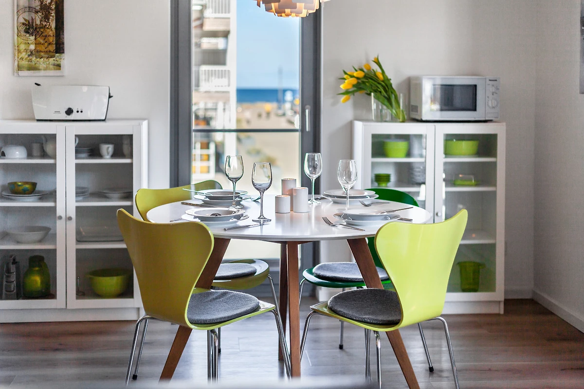 Perfekt. Alles was gebraucht wird ist vorhanden. Sehr guter Zustand. Tolle Sicht auf die Ostsee vom Esstisch aus und vom Balkon aus in den Segelhafen. Bäcker, Restaurants, Fischbrötchenladen, Crepesstand usw. dicht bei. Parken vor der Haustür. Rundrum zufrieden.