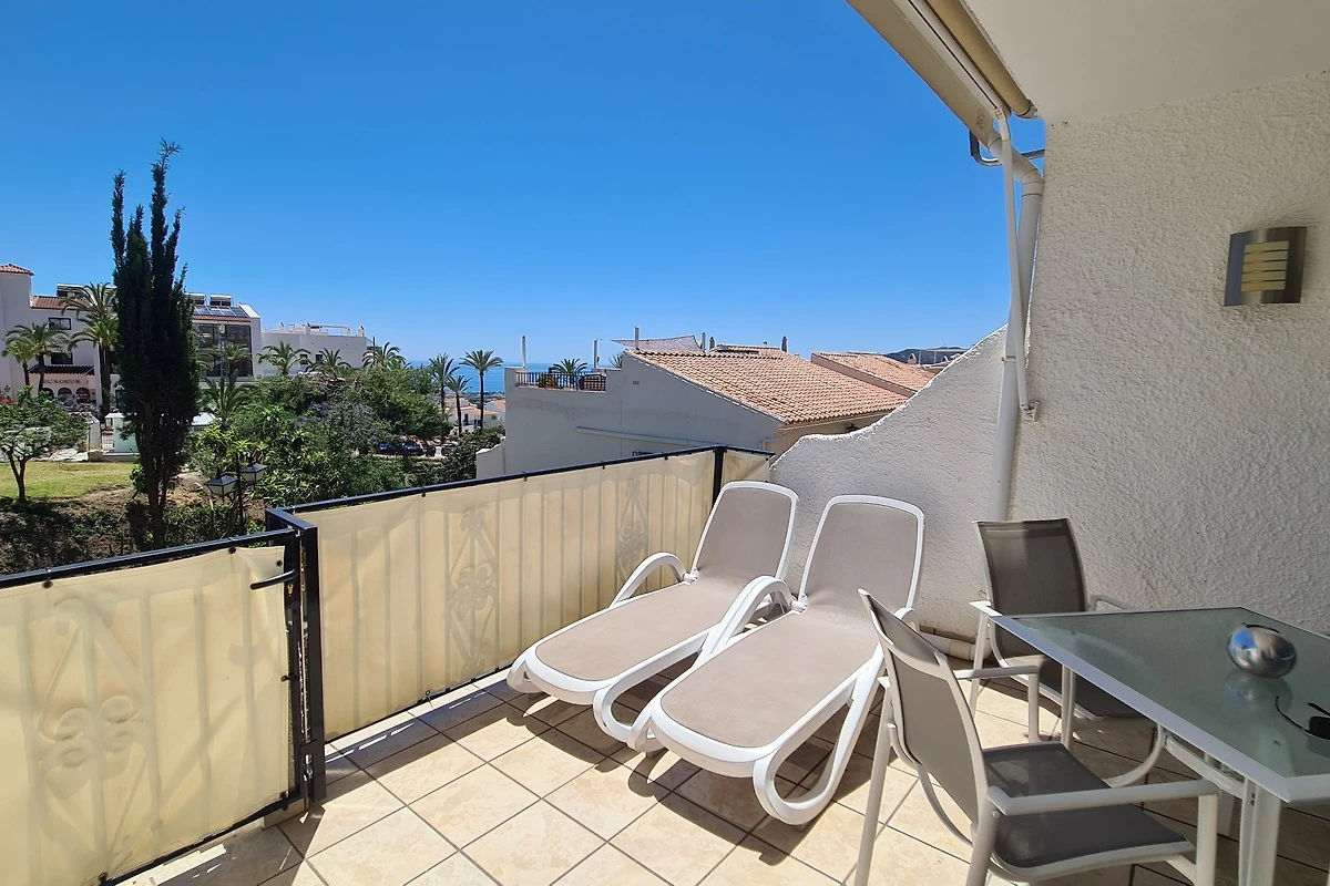Gelegen op de top van alle complexen, vindt u hier het meest spectaculaire uitzicht in de omgeving op de uitgestrekte Middellandse Zee. Ondanks het fantastische panoramische uitzicht vanwege de ligging in de eerste heuvels achter het centrum van Nerja, is het slechts ongeveer 3 minuten met de auto naar het strand en ongeveer 5 minuten naar het levendige centrum en de oude stad.
