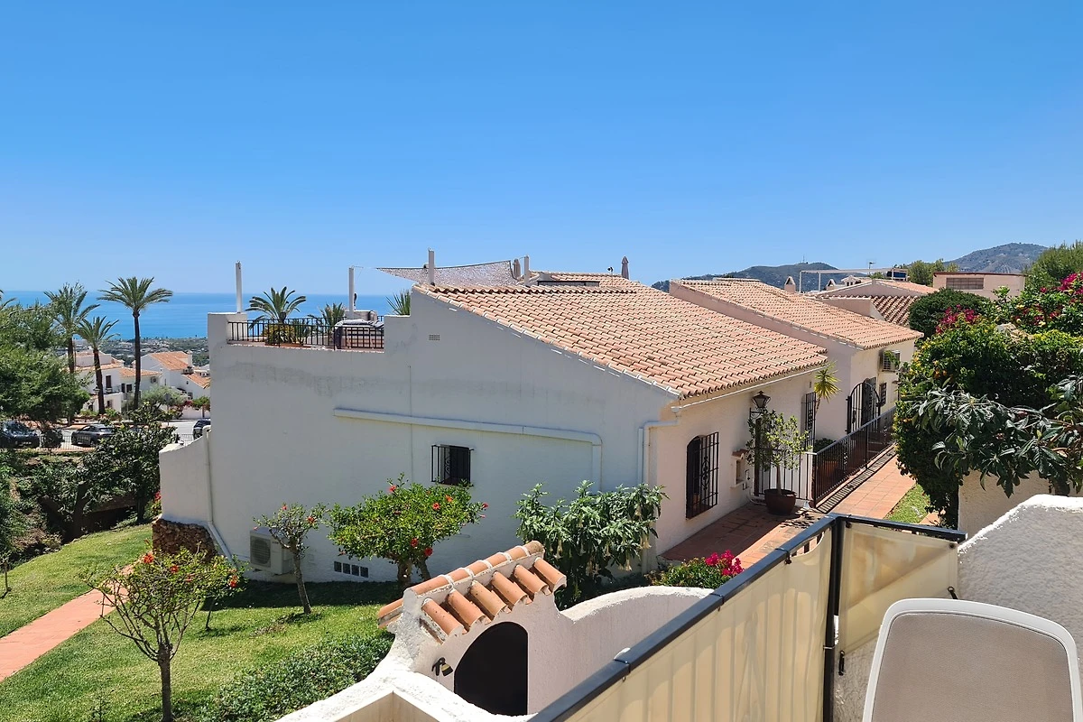 Het moderne, geschakelde vakantiehuis ligt in het tuinencomplex van San Juan de Capistrano in Nerja, niet ver van het mooie Burriana-strand (op ca. 1800 m afstand, openbare pendelbus naar het strand op ca. 90 m afstand).