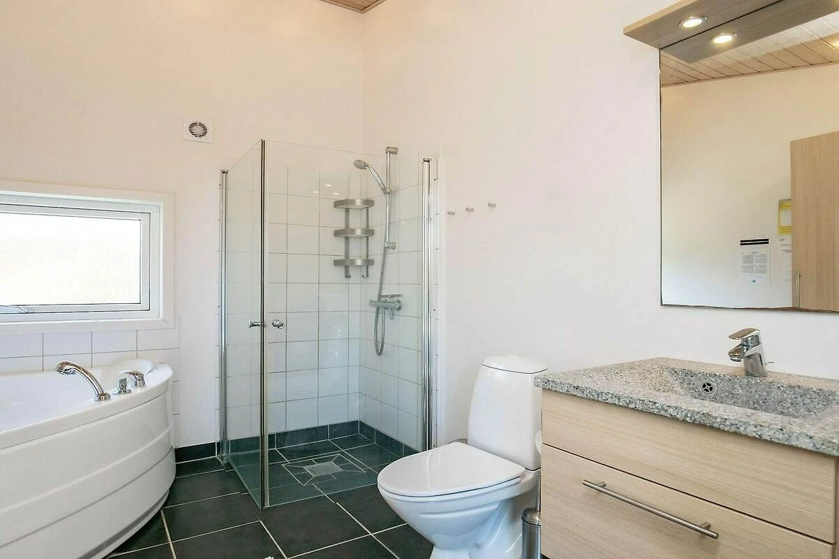 Auf einem großen Naturgrundstück, nur ca. 200 m von der Küste bei Kærgården, findet man dieses Ferienhaus mit Whirlpool im Bad. Das Haus ist innen hell und wohnlich eingerichtet mit einem großen Fenster zur Terrasse. Es gibt drei große Schlafzimmer; zwei mit je einem Doppelbett, das dritte mit zwei Einzelbetten. Alle Zimmer bieten gute Staufläche. Für die kleinen Feriengäste stehen sowohl Hochstuhl als auch Kinderbett bereit. Große, offen kombinierter Wohn-/Essbereich und gut ausgestattete Küche mit u.a. Geschirrspüler, Kühl-/Gefrierschrank, Mikrowelle und Ceranfeld. Vom hellen Wohnbereich hat man direkten Zugang zur großen, offenen Terrassenfläche. Zur technischen Ausstattung des Ferienhauses zählen freie WLAN, TV, DVD-Player und Chromecast zum Streamen eigener Anbieter. Zudem Badezimmer mit Whirlpool für zwei Personen sowie angenehmer Fußbodenheizung und Dusche im Haus. Außerdem stehen Waschmaschine und Wäschetrockner bereit. Außen große, offene Terrasse mit hochwertigen Gartenmöbeln und Grill für schöne Tage und Abende. Für die kleinen Gäste gibt es einen direkten Zugang zu dem schönen Gemainschaftsspielplatz. Keine Vermietung an Jugendgruppen erwünscht!A refundable deposit might be charged closer to your check-in date. The security deposit ensures a smooth stay and covers any additional services or consumption charges.This deposit covers utilities consumed during your stay and any additional services that may be taken.The final amount will be adjusted based on actual meter readings, actual usage of extra services, and any remaining balance will be refunded within 21 days after checkout.This deposit simply acts as a prepayment for charges that you would anyways pay for, ensuring a seamless stay and check-out experience.