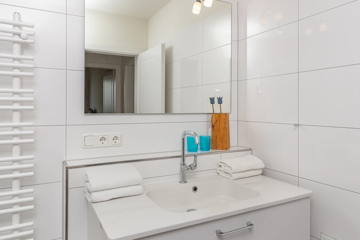 De woning "Weiße Düne 2" houdt volledig en geheel wat ze belooft. De ligging in Wittdün is ideaal als je je auto op het vasteland wilt laten, want vanaf de veerbootterminal is het maar 10-15 minuten lopen. Het mooiste vonden we het prachtige uitzicht vanaf het noordbalkon (en een van de slaapkamers) op het Waddengebied, maar ook het zuidbalkon nodigt uit tot een zonnige middagpauze en is zeer rustig gelegen aan de achterkant. We hadden een beetje onderschat hoe druk de eilandweg voor het huis op sommige momenten is, maar uiterlijk in de vroege avond is dit doorgaans aanzienlijk minder. Als kleine verbeteringssuggestie zouden we donkerdere plisségordijnen of extra gordijnen in de slaapkamer aanbevelen, aangezien deze toch erg lichtdoorlatend en helder zijn. Over het algemeen zouden we het appartement echter altijd weer boeken en voelden we ons er helemaal thuis.