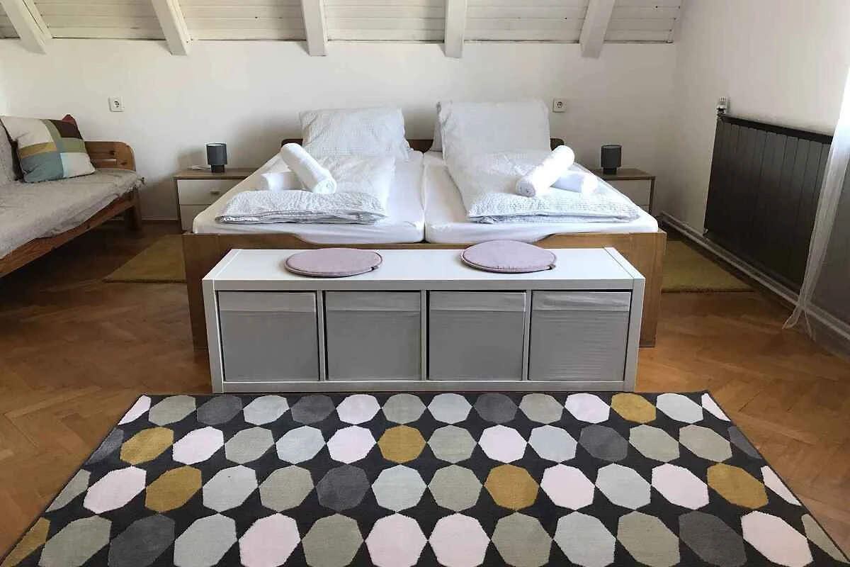 Ligging: Balatonkeresztúr. De vakantiewoning ligt in een éénsgezinswoning, is in het jaar 2021 gerenoveerd en is modern ingericht. Het grondstuk is in het centrum. Deze plaats is populair vanwege het ligt op een rustige plek. De toegangsweg naar het terrein gaat via een geasfalteerde zijstraat. Bij het huis zijn parkeerplaatsen op het perceel beschikbaar. Openbare parkeerplaatsen zijn op de straat voor het huis. De dichtsbijzijnde winkels zijn op 800 m afstand, restaurant 800 m en centrum 800 m. dokter, apotheek elk 500 m in Balatonkeresztúr. bank in Balatonmáriafürdő 700 m. Een kinderspeelplaats op 100 m afstand. spoorlijn 400 m en hoofdweg 300 m.