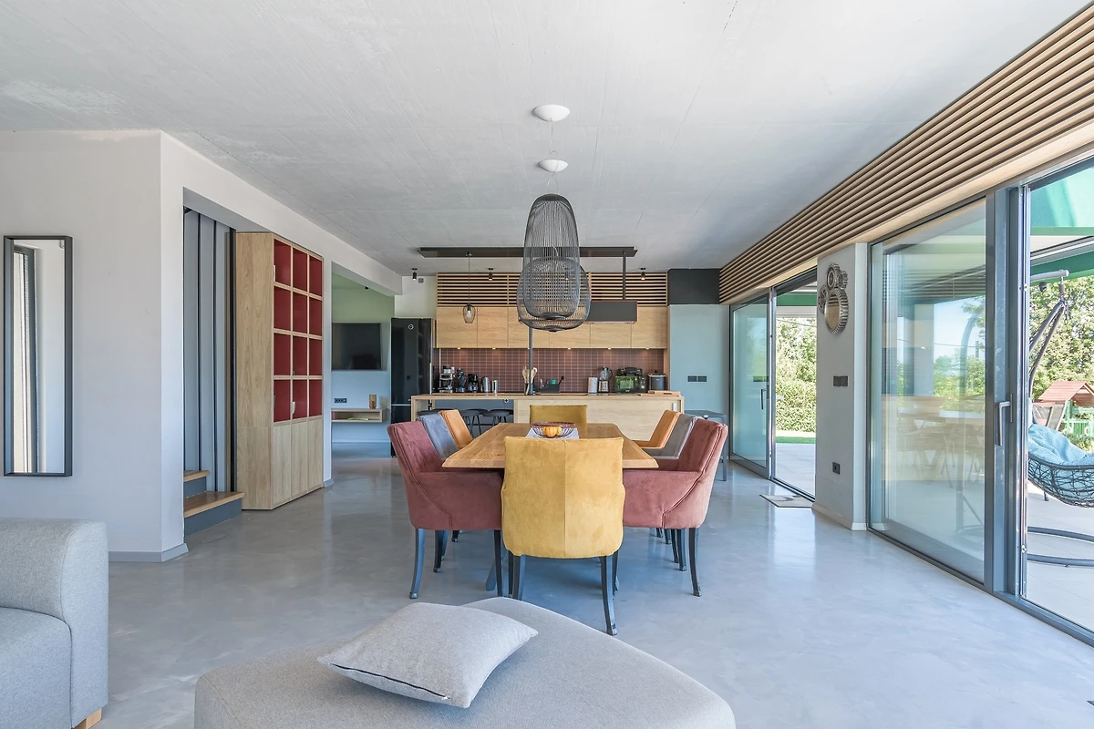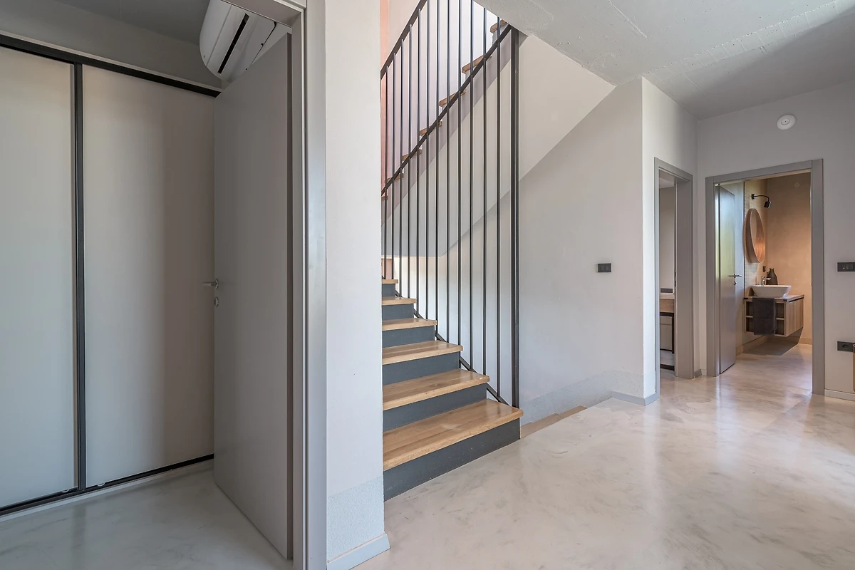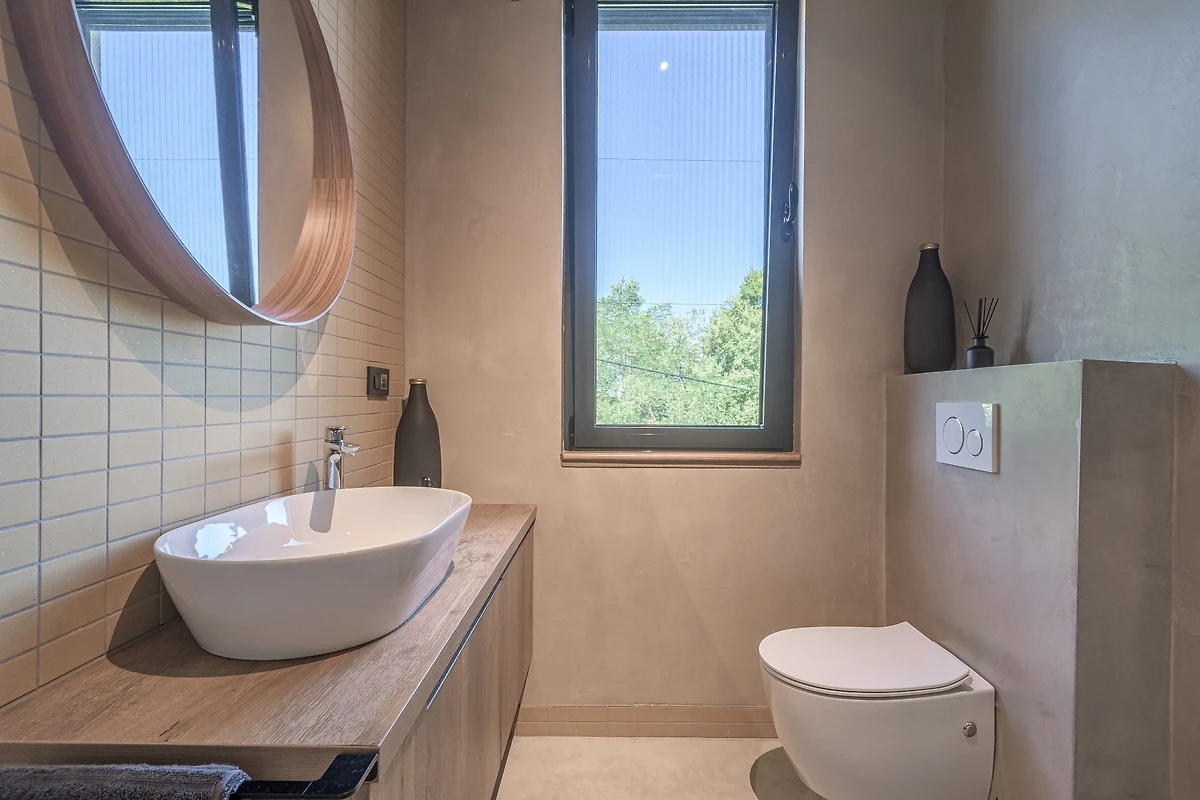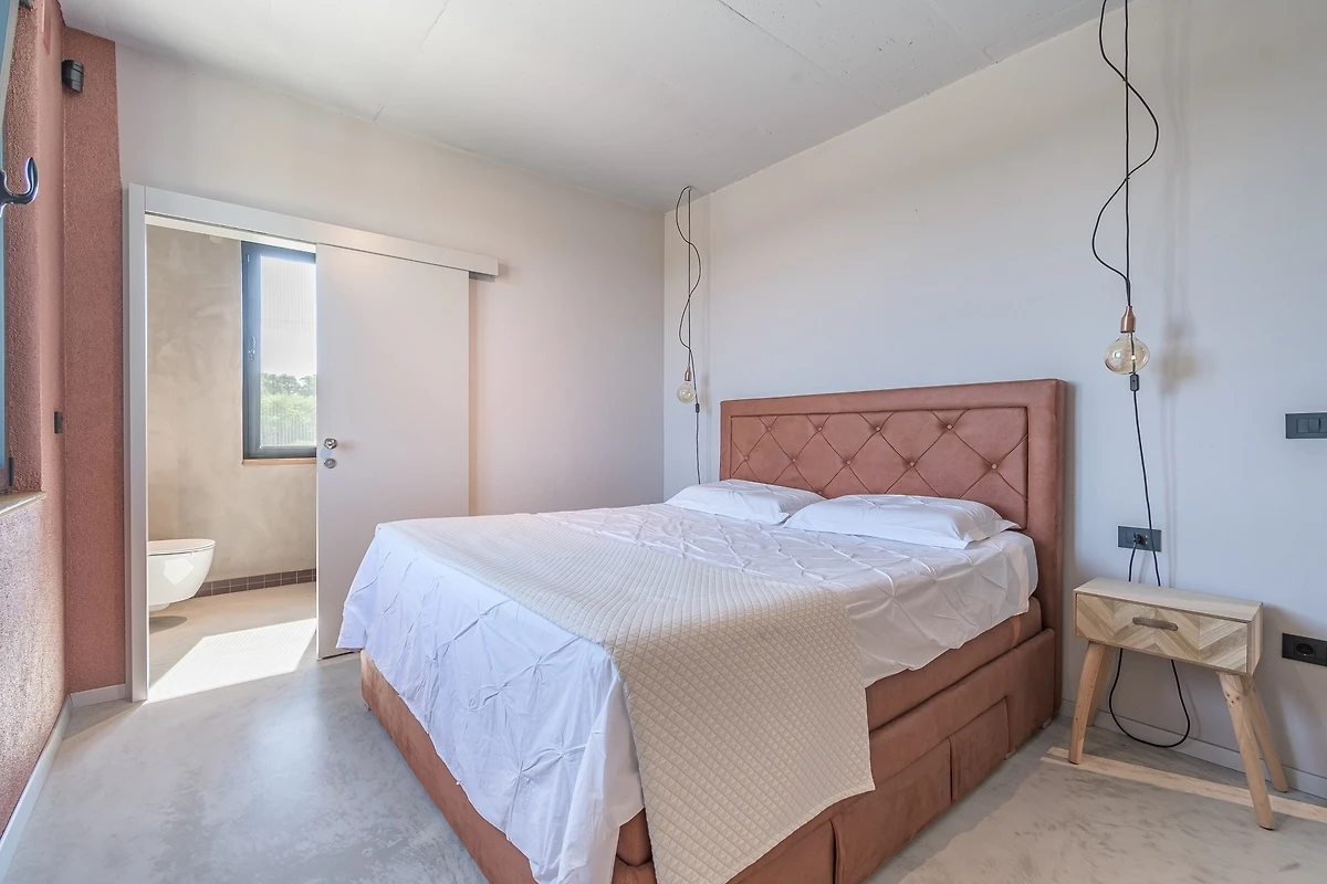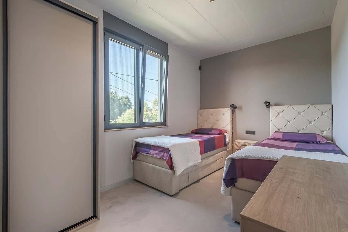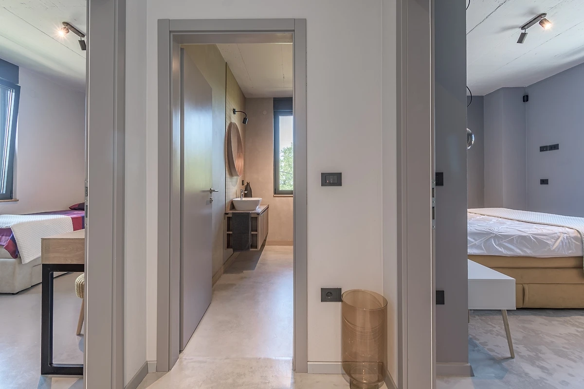 Het huis ligt afgelegen en biedt veel privacy. Uitzicht op de natuur vanuit bijna alle kamers. Bovenaan het huis is er een terras met zicht op zee, de Alpen en Porec in de verte