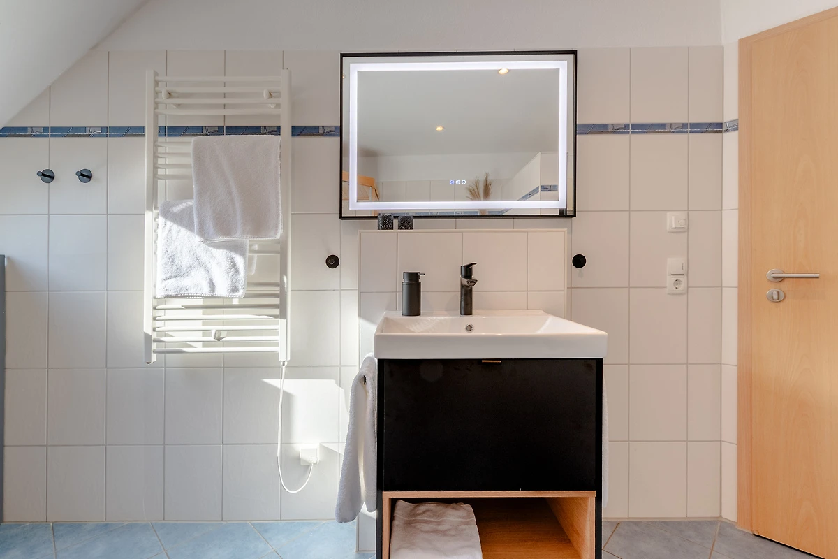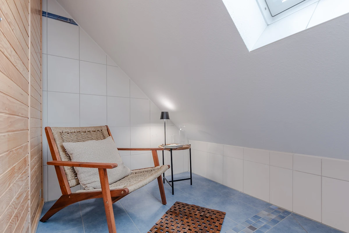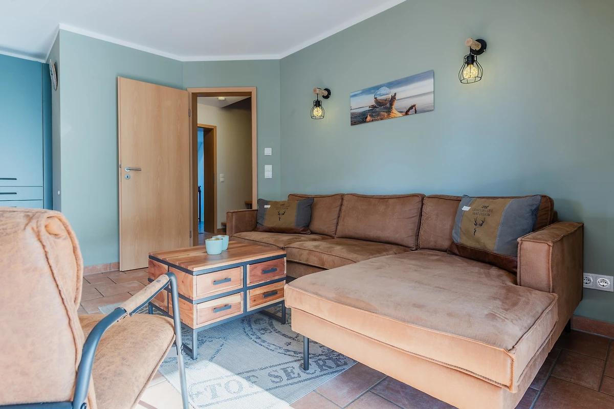 De Witter Barg flat is verdeeld over 2 verdiepingen op de bovenste en bovenste verdieping en biedt ruimte voor maximaal 4 personen, heeft een gezellige woonkamer, 2 slaapkamers, badkamer met bubbelbad en 2 balkons met een prachtig uitzicht op het kustbos. Het is dus een oase van rust en ontspanning - ideaal voor uw gezinsvakantie.