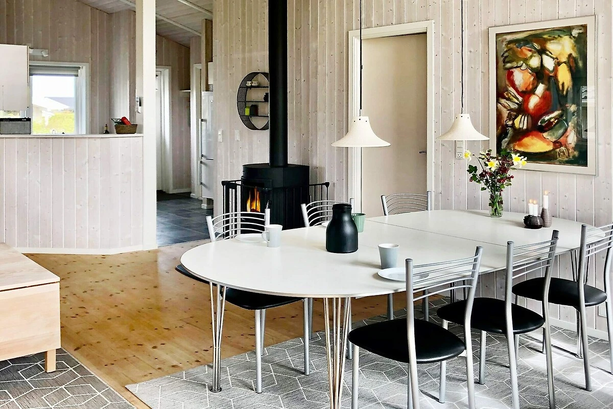 In einem Ferienhausgebiet bei Flovt finden Sie dieses geräumige Ferienhaus, das nur etwa 300 m vom Strandufer entfernt ist. Den Mittelpunkt des Ferienhauses bildet der helle, geräumige Küchen-/Wohnbereich für das Familienleben. Von dort genießt man Ausblick zum Gartengrundstück. Das Ferienhaus verfügt über drei separate Schlafzimmer und ein mögliches Zustellbett im Alkoven im Küchen-/Wohnbereich, das als Ausweichmöglichkeit genutzt werden kann. Im Haus wurde auch an die Kleinen gedacht, da es ein Kinderbett, einen Hochstuhl und sogar eine Wickelauflage im Bad gibt. Das Ferienhaus ist u.a. mit klimafreundlicher Wärmepumpe, Waschmaschine, Geschirrspüler, Induktionskochfeld, Soundbar / Beoplay und Smart-TV gut ausgestattet. Im Außenbereich finden Sie sowohl eine überdachte als auch eine offene Terrassenfläche vor, die fast das gesamte Haus umschließen, damit Sie den Urlaubstag vom Frühstück bis zum Abendessen im Freien genießen können. Für die Kleinen gibt es ein Spielhäuschen, ein Schaukelgerüst und einen Sandkasten. In einer Ecke des Gartens gibt es eine Feuerstelle. Das komplette Gartengrundstück ist mit Zaun und Hecke gut abgeschirmt. Keine Vermietung an Jugendgruppen erwünscht!A refundable deposit might be charged closer to your check-in date. The security deposit ensures a smooth stay and covers any additional services or consumption charges.This deposit covers utilities consumed during your stay and any additional services that may be taken.The final amount will be adjusted based on actual meter readings, actual usage of extra services, and any remaining balance will be refunded within 21 days after checkout.This deposit simply acts as a prepayment for charges that you would anyways pay for, ensuring a seamless stay and check-out experience.