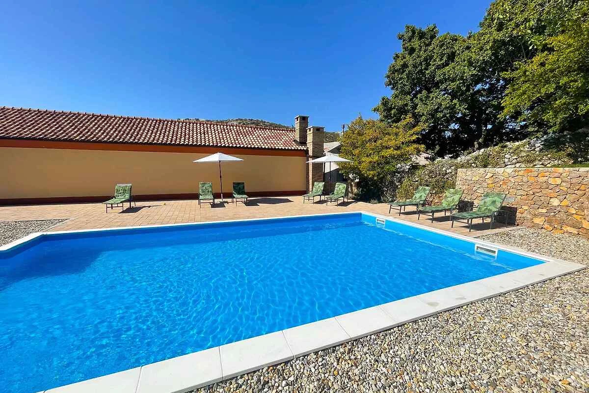 Uw vakantiehuis: Uw villa heeft 2 verdiepingen, 5 kamers (daarvan 4 slaapkamers), is 180 m² groot en is geschikt voor maximaal 10 personen. Een airconditioning zorgt op hete dagen voor een aangename temperatuur. Op koude dagen kan uw villa verwarmd worden met centrale verwarming (hout/kolen). De ingang is gelijkvloers en leidt direct in de vestibule. De indeling van de kamers is als volgt: