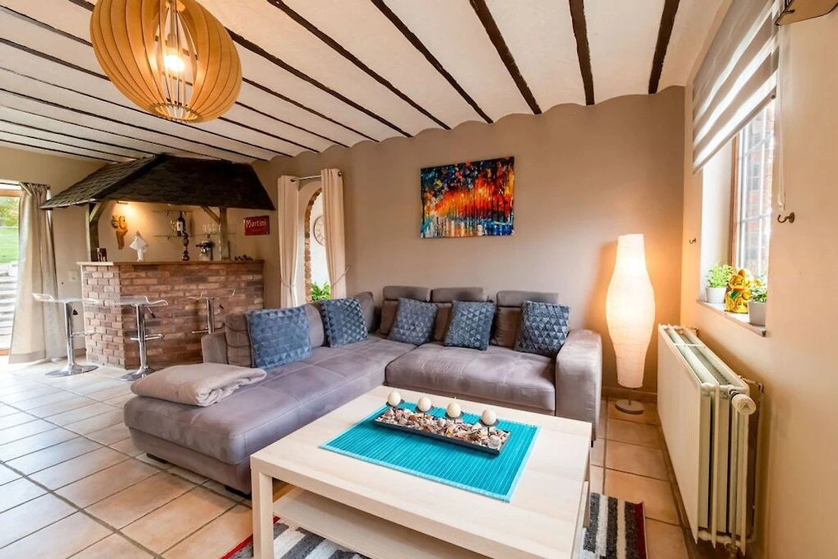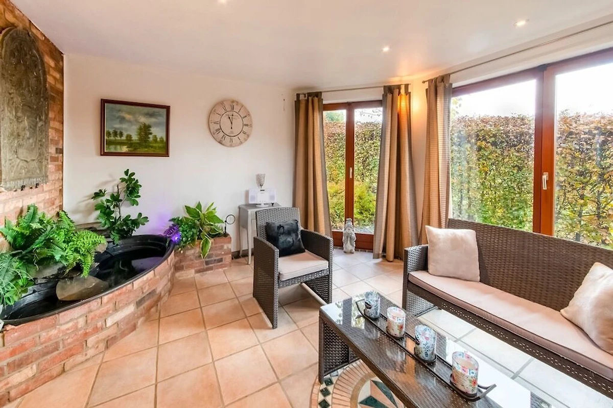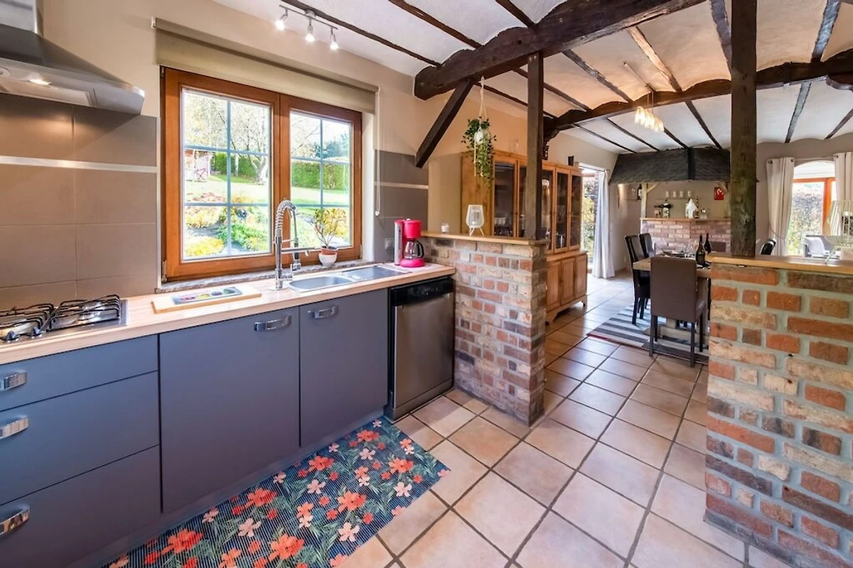 Een heerlijk huis in een mooie omgeving. Alle gemakken zijn aanwezig van een goede keuken, een haard, een BBQ tot een Jacuzzi. Alles was in bijna nieuwstaat en zeer schoon. Bedden leken wel ongebruikt en waren fris, schoon en netjes opgemaakt. Er lag hout klaar voor de haard, kolen voor de BBQ en een fles Belgisch bier. De eigenaar is erg vriendelijk en gastvrij. Hij wil het je erg graag naar de zin maken. TV heeft voldoende zenders, de serre een leuk vijvertje en er zijn ruim voldoende zitplekken en plaatsen buiten. Het is helemaal omheind zodat je een hond ook met een gerust hart kunt laten loslopen.
