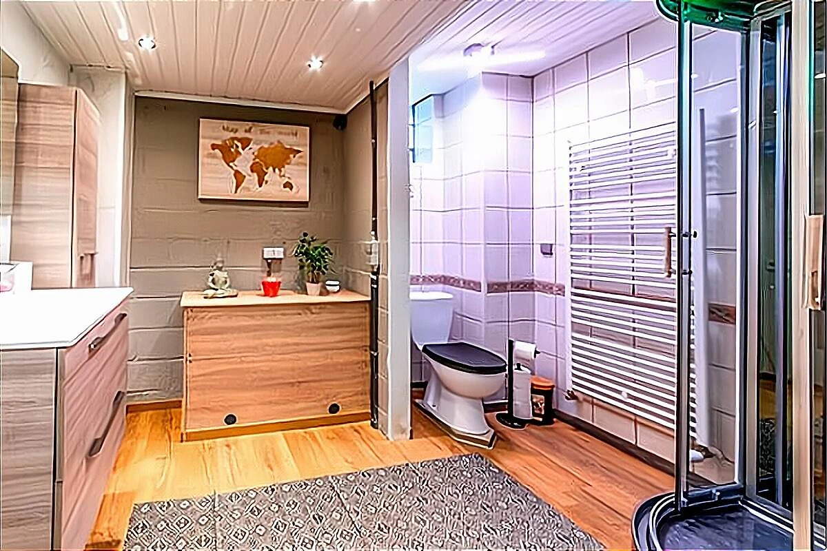 De gamekamer en de douche/wc op het garageniveau zijn is erg koud. Voor darten, airhockey en tafelvoetbal moet je echt schoenen of sloffen aan. Ook is de douche/wc daar wat spartaans.