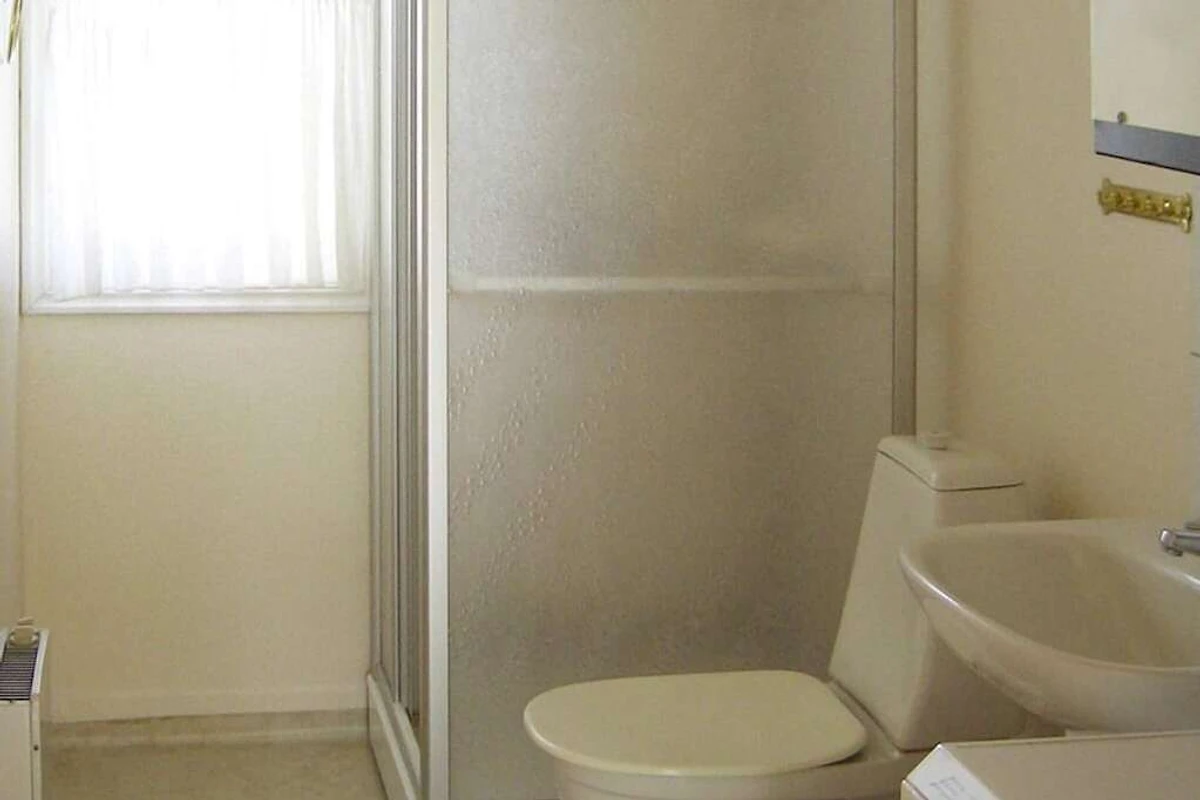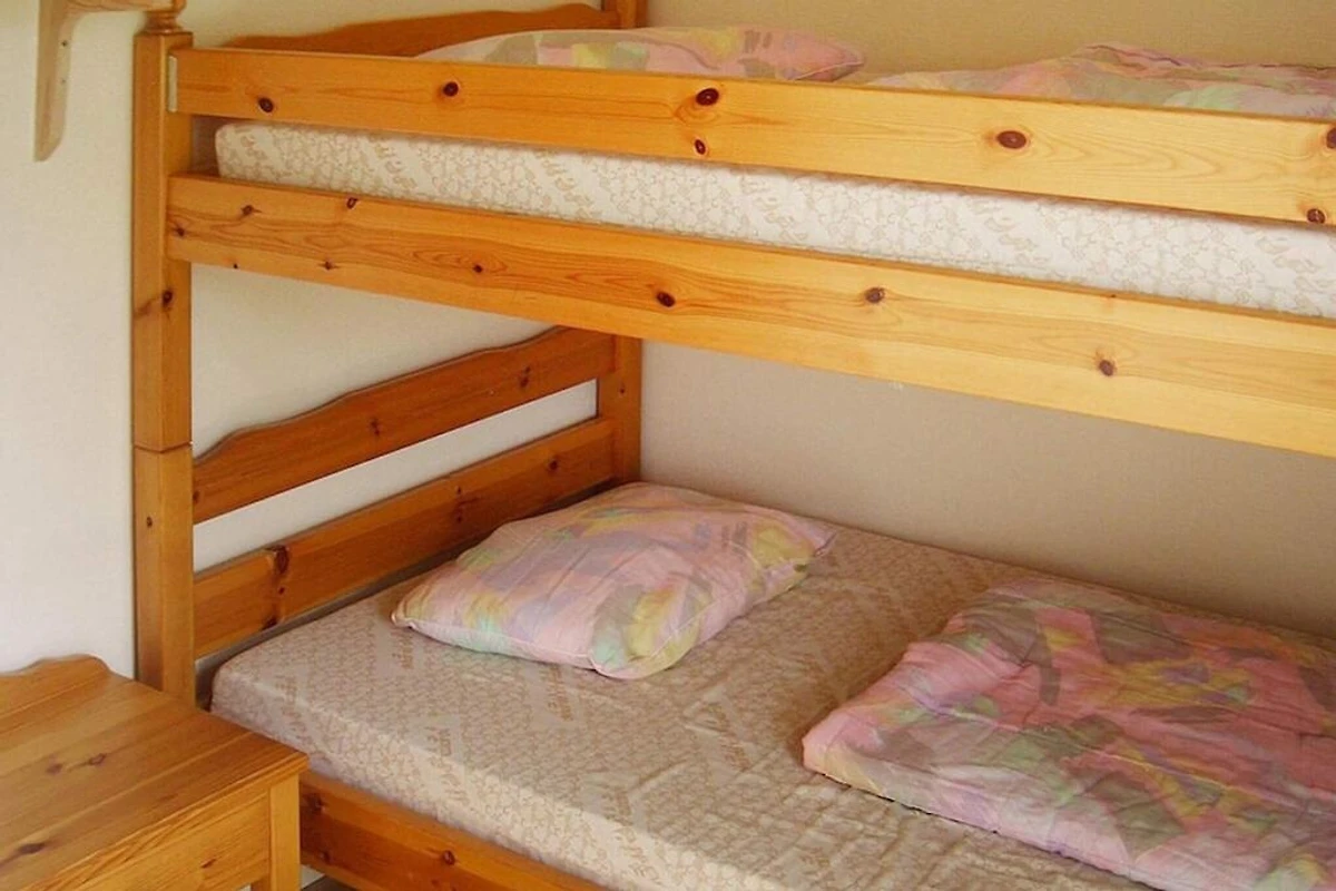 , open keuken(fornuis(elektrisch), afzuigkap, koffiezetapparaat, magnetron, afwasmachine, koel-/vriescombinatie), woon/slaapkamer(TV(zweedse TV zenders), radio), slaapkamer(2-pers. bed), slaapkamer(2x stapelbed), badkamer(wasbak, douche, toilet, wasmachine), terras(overdekt)(tuinmeubilair, BBQ), tuin, aardwarmte