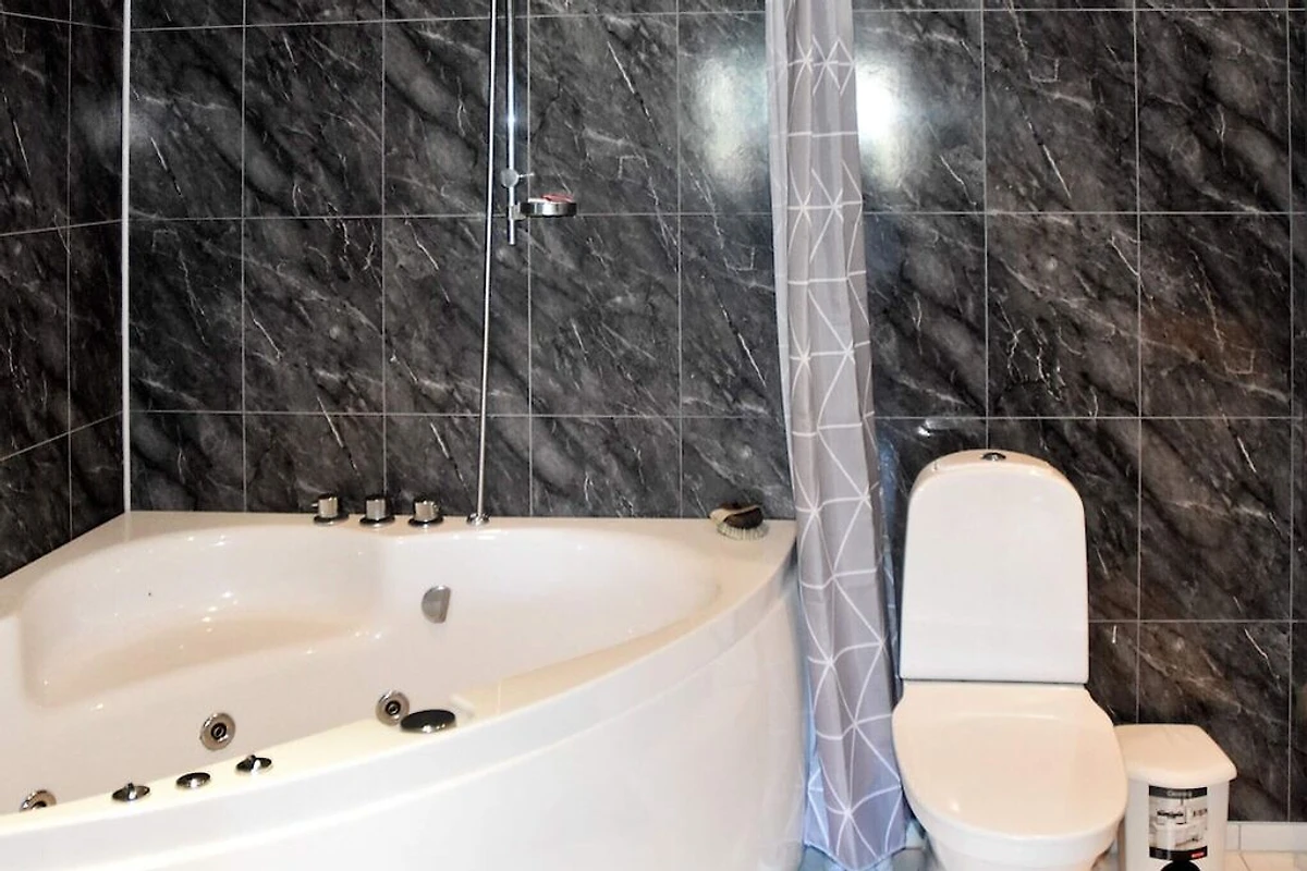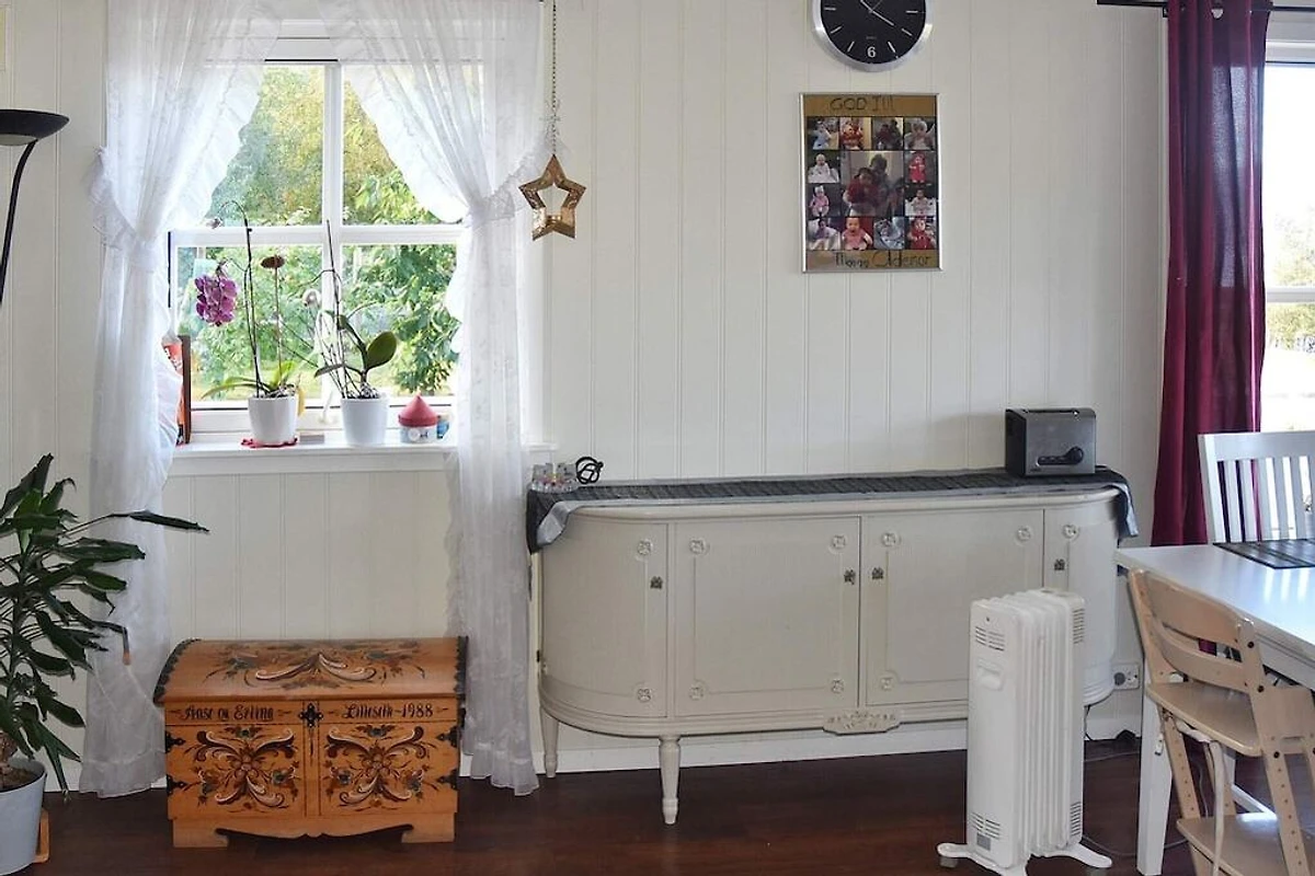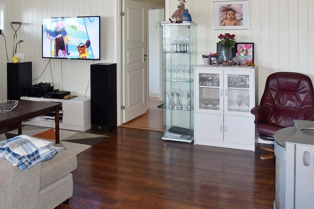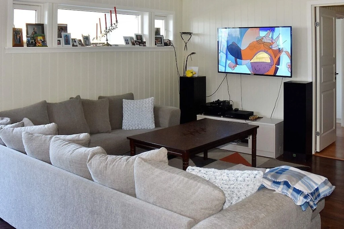 Keuken(1-pers. vouwbed, fornuis(elektrisch), afzuigkap, koffiezetapparaat(filtermaling), wafelijzer, magnetron, afwasmachine, koelkast, vriezer(200-249L), wasmachine, kinderstoel), woon/slaapkamer(36 m2)(TV(satelliet, duitse zender(s), noorse TV zenders (NRK en TV2)), radio), slaapkamer(2-pers. bed, kinderbed), slaapkamer(1-pers. bed), slaapkamer(2x 1-pers. bed), badkamer(vloerverwarming)(bad of douche, wasbak, toilet), badkamer(vloerverwarming)(wasbak, toilet), bubbelbad(in huis, 2 personen), verwarming(elektrisch), terras(23 m2), terras(overdekt, 11 m2), tuinmeubilair, BBQ, parking, zwembad(buiten), lucht-lucht warmtepomp