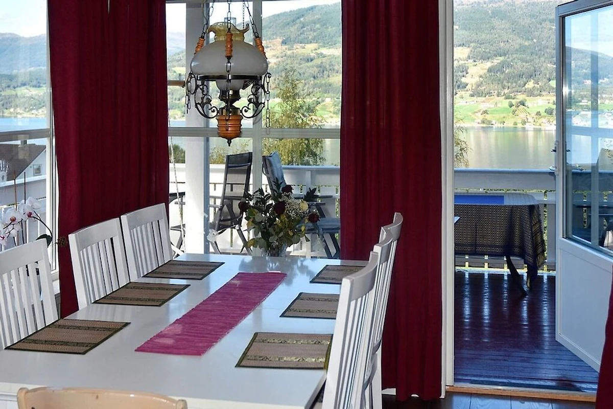 Schönes Ferienhaus mit Außen-Pool und herrlicher Panoramaaussicht zu Fjord und Gebirge! Der passende Ort für den Familienurlaub! Das gut ausgestattete Ferienhaus, mit angenehmer, wasserbasierter Wärme in den Fußböden, bietet einen schönen Rahmen für erholsame Urlaubstage. Im Sommer haben Sie ca. 40 m vom Ferienhaus entfernt Zugang zu einem 49 m2 großen Pool, der von einer großen, umzäunten Terrasse eingerahmt wird. Der Pool ist 210 cm tief, solarbeheizt und die Wassertemperatur liegt knapp unter der Temperatur im Schatten. Alternativ ist es nur 1 km zum nächsten seichten Badeufer am Fjord. Diverse Strecken führen von hier hinauf ins Gebirge, wo man herrlich wandern kann. Die Berge sind überwiegend leicht zugänglich. Erleben Sie die totale Stille oben im Hochgebirge auf 1.400 m.ü.M.! Einer der besten Lachsflüsse Norwegens, Gloppeelva, ist nur 4 km entfernt sowie Eidsfossen mit einer der längsten Lachsleitern Europas. Es sind 3,5 km zum Forellensee Langedalsvannet. Ziele für Tagesausflüge: Folfen Sie der fantastischen Panoramastraße zwischen Lote und Blakset, eine Fahrt entlang des Nordfjords mit großartiger Panoramaaussicht an zahlreichen Stellen. Loen Skylift, mit Verbindung ab Fjordufer und hinauf zum Berggipfel in nur 5 Minuten, ist ebenfalls einen Ausflug wert. Tipp: Wenn Sie ein Boot mieten möchten, kontaktieren Sie den etwa 2 km entfernten Campingplatz für eine stunden- oder tageweise Anmietung!