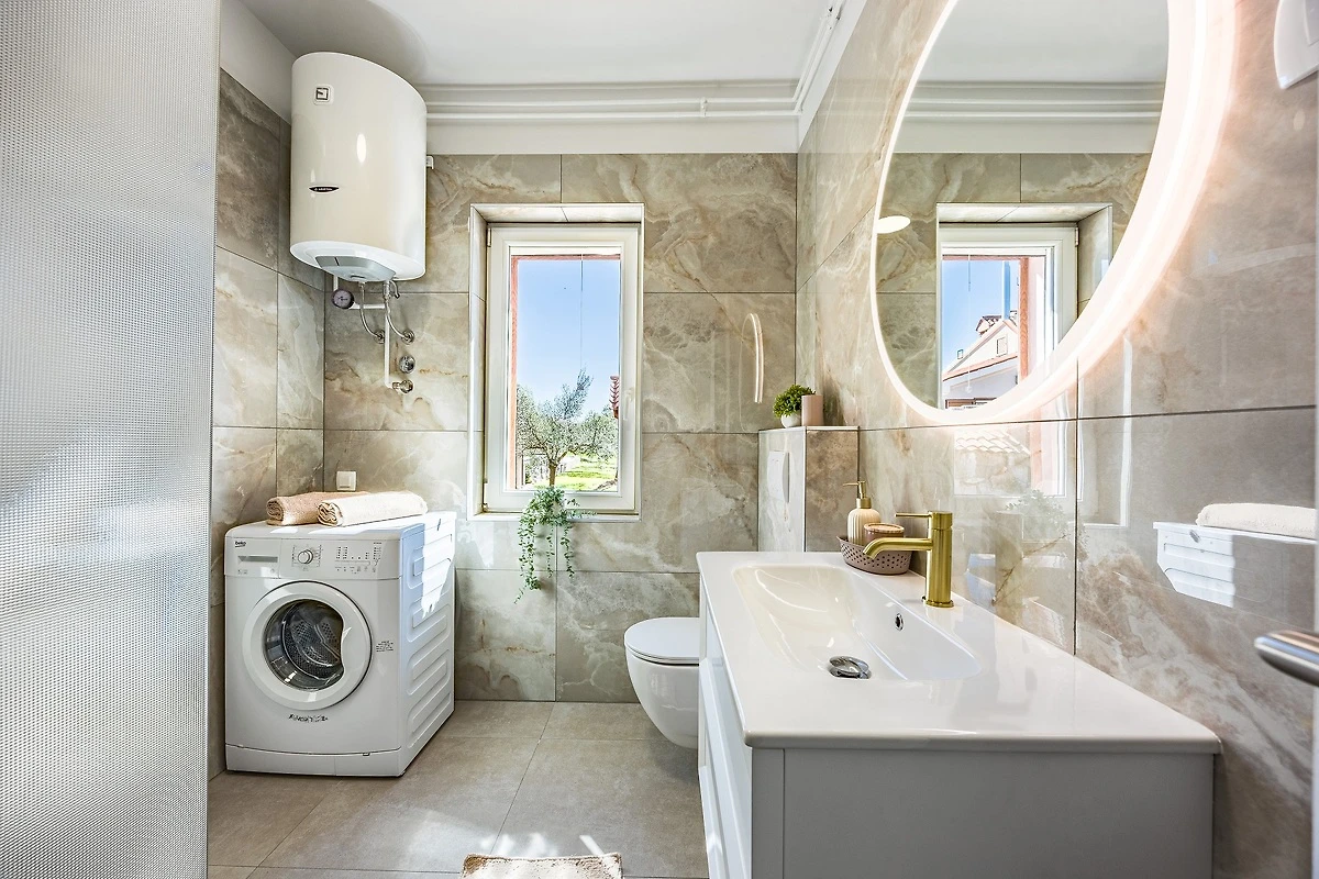 Villa Natali ligt in een rustig dorpje in Istrië. Een privé zwembad van 28 m2 is gelegen in een grote privé tuin van 1500 m2. In de tuin staan ligstoelen rond het zwembad en parasols.
